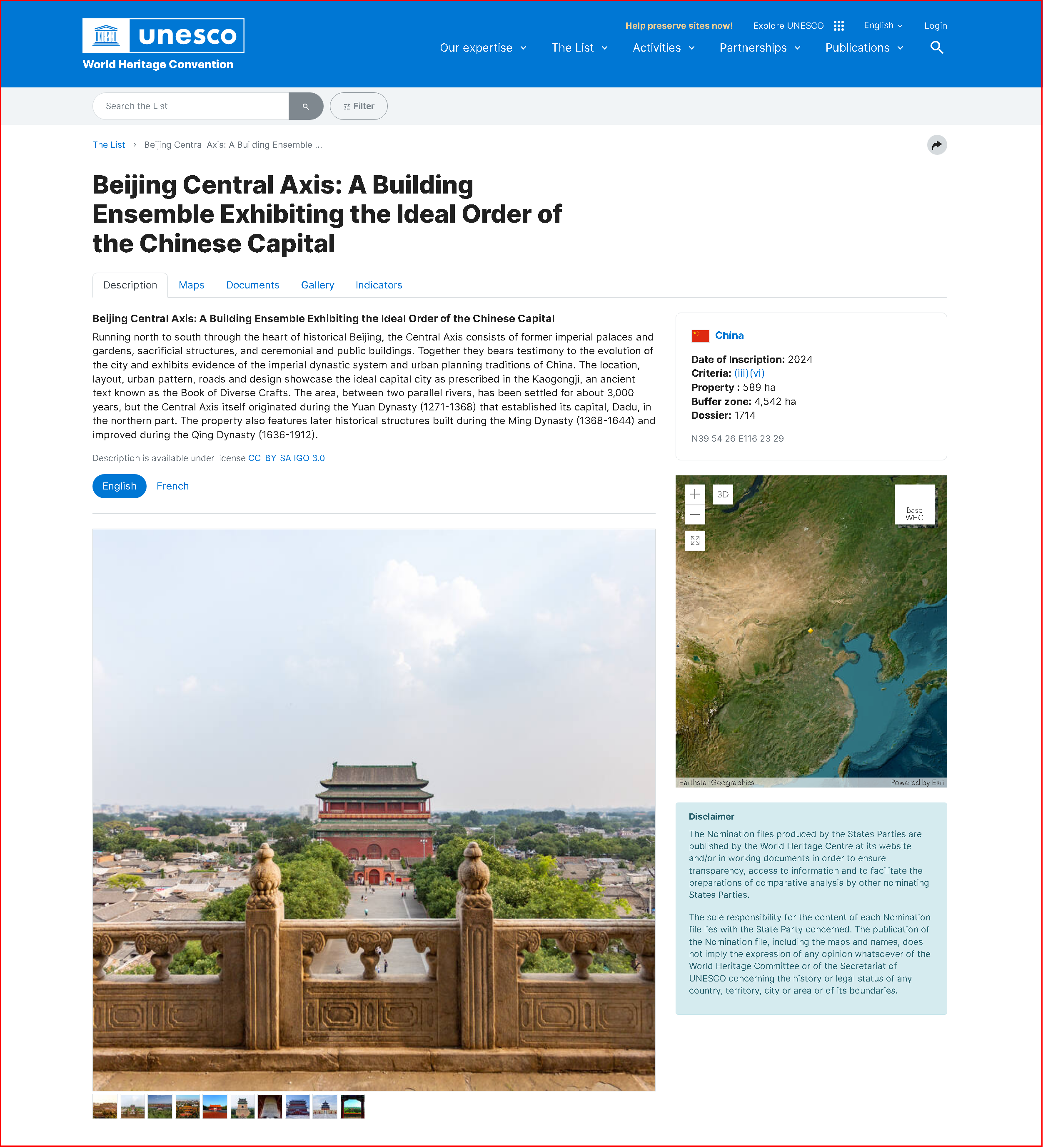據(jù)介紹,聯(lián)合國(guó)教科文組織世界遺產(chǎn)委員會(huì)認(rèn)可“北京中軸線”的完整性、真實(shí)性和保護(hù)管理狀況,及其作為社會(huì)和政治中心對(duì)中國(guó)社會(huì)發(fā)揮持續(xù)的作用,認(rèn)為“北京中軸線”代表了世界城市歷史中的一種特有類型,其所體現(xiàn)的中國(guó)傳統(tǒng)都城規(guī)劃理論和“中”“和”哲學(xué)思想,為世界城市規(guī)劃史作出了重要貢獻(xiàn)。該組織高度贊賞中國(guó)政府在北京老城文化遺產(chǎn)保護(hù)傳承方面付出的巨大努力和取得的突出成績(jī)。