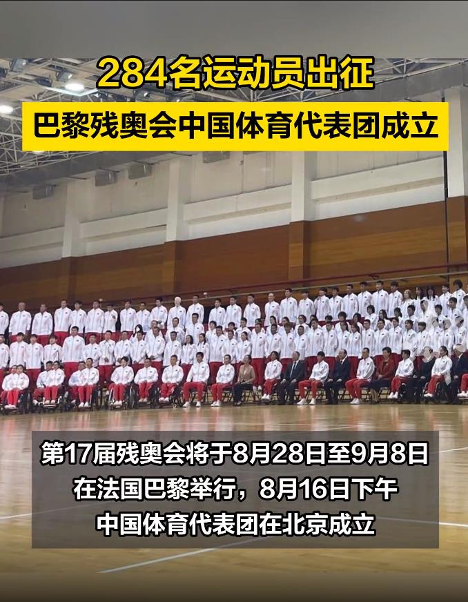 8月16日,巴黎殘奧會(huì)中國(guó)體育代表團(tuán)成員在成立儀式上。新華社發(fā)(中國(guó)殘聯(lián)供圖)