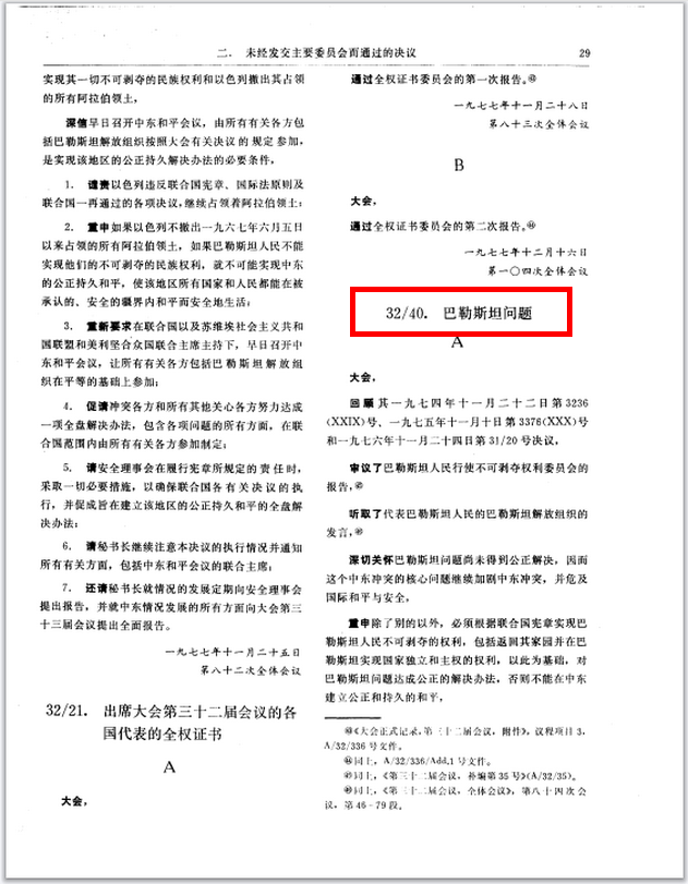 習(xí)近平指出,巴勒斯坦問題是中東問題的核心,關(guān)乎國(guó)際公平正義。當(dāng)務(wù)之急是全面有效執(zhí)行聯(lián)合國(guó)安理會(huì)有關(guān)決議,盡快?;鹬箲?zhàn),緩和地區(qū)局勢(shì)。根本出路是把“兩國(guó)方案”落到實(shí)處,推動(dòng)巴勒斯坦問題政治解決,建立以1967年邊界為基礎(chǔ)、以東耶路撒冷為首都、享有完全主權(quán)的獨(dú)立的巴勒斯坦國(guó),實(shí)現(xiàn)巴勒斯坦人民建國(guó)權(quán)、生存權(quán)、回歸權(quán)。
