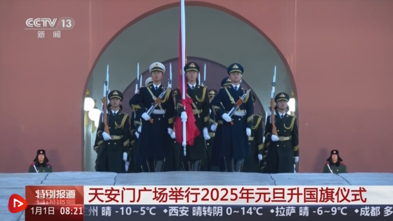 央視網(wǎng)消息:揮別2024,迎接2025第一縷陽(yáng)光。新年第一天,全國(guó)各地的群眾來到首都北京的天安門廣場(chǎng),觀看莊嚴(yán)隆重的升國(guó)旗儀式,共祝新年好、祖國(guó)好。記者也用鏡頭記錄了2025年第一次天安門廣場(chǎng)升國(guó)旗儀式。