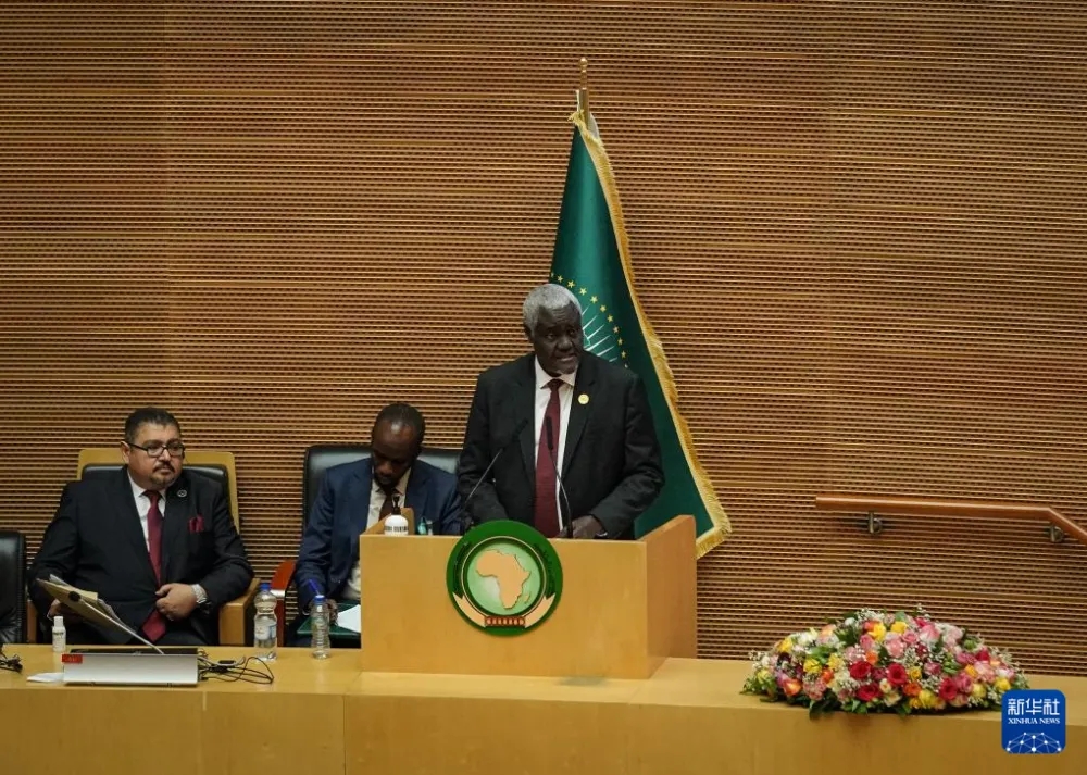 2月15日,在埃塞俄比亞首都亞的斯亞貝巴,非盟委員會主席法基在開幕式上發(fā)言。