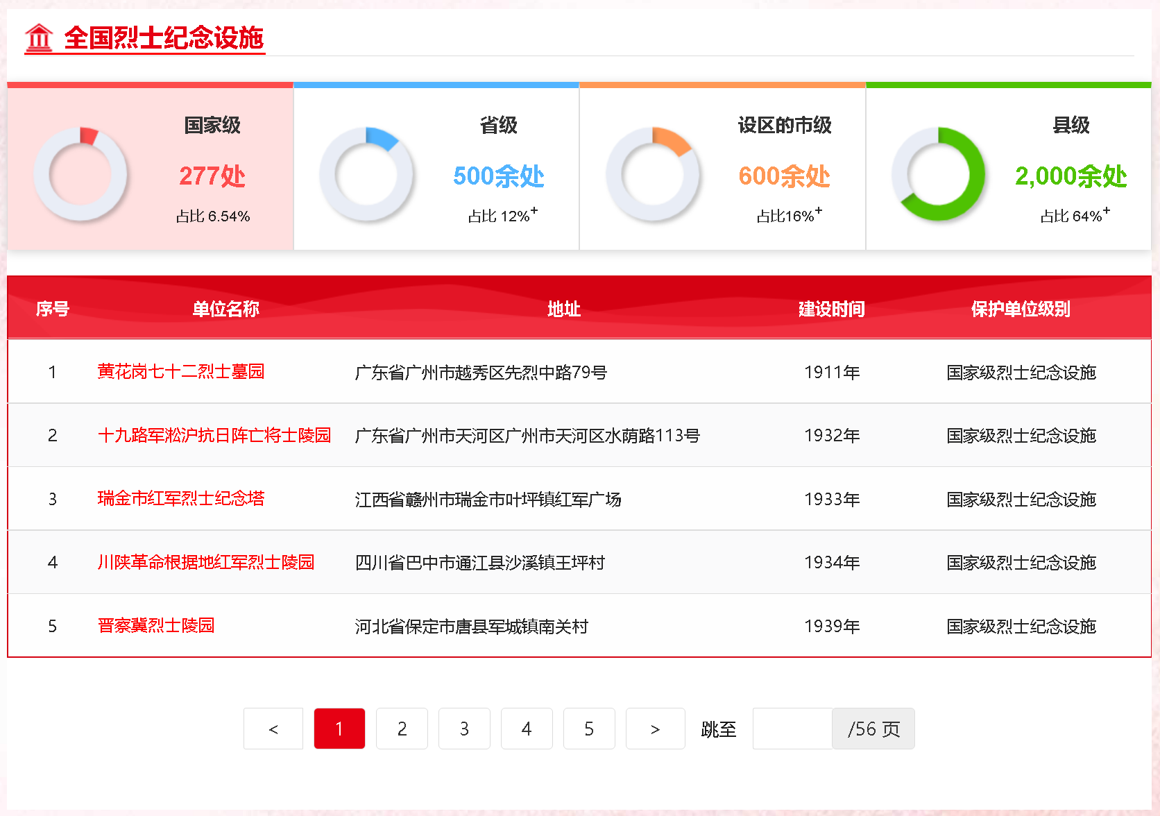 第一至六批國(guó)家級(jí)烈士紀(jì)念設(shè)施名單