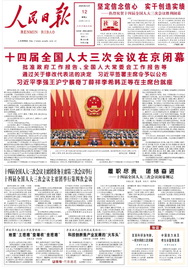 聽民聲,納民意,匯民智,聚民力。3月11日,十四屆全國人大三次會議圓滿完成各項(xiàng)議程,在北京勝利閉幕。與會代表集思廣益,大會風(fēng)清氣正,會議成果豐富,充分體現(xiàn)了黨的主張和人民意志的統(tǒng)一。我們對大會的成功表示熱烈祝賀!