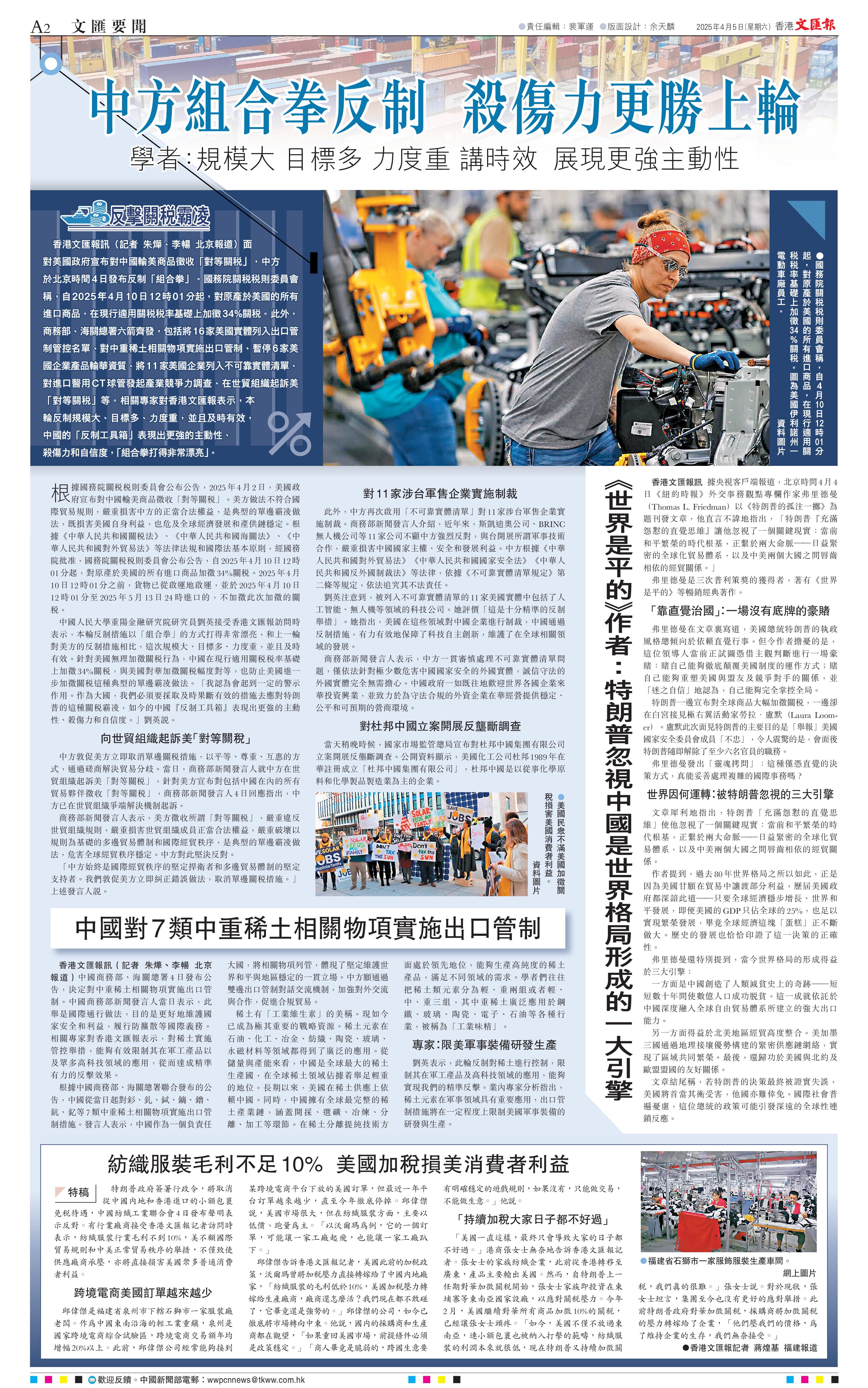 香港文匯報(bào)訊據(jù)央視客戶端報(bào)道,北京時(shí)間4月4日《紐約時(shí)報(bào)》外交事務(wù)觀點(diǎn)專欄作家弗里德曼(Thomas L. Friedman)以《特朗普的孤注一擲》為題刊發(fā)文章,他直言不諱地指出,「特朗普『充滿怨懟的直覺(jué)思維』讓他忽視了一個(gè)關(guān)鍵現(xiàn)實(shí):當(dāng)前和平繁榮的時(shí)代根基,正系于兩大命脈——日益緊密的全球化貿(mào)易體系,以及中美兩個(gè)大國(guó)之間唇齒相依的經(jīng)貿(mào)關(guān)系?!?/span>