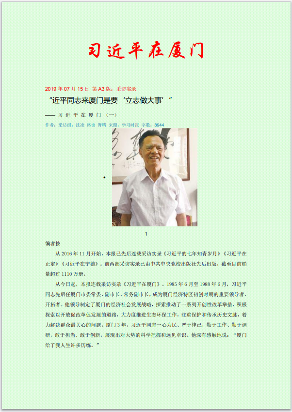 當(dāng)年,習(xí)近平同志領(lǐng)導(dǎo)編制的《1985年—2000年廈門經(jīng)濟(jì)社會發(fā)展戰(zhàn)略》,以前瞻性的戰(zhàn)略眼光指明廈門永續(xù)發(fā)展之路,成為中國地方政府最早編制的一個縱跨十五年的經(jīng)濟(jì)社會發(fā)展戰(zhàn)略規(guī)劃。