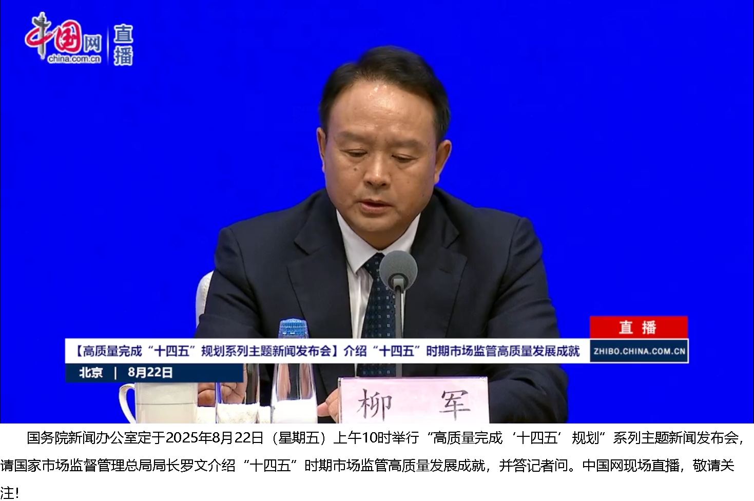 【高質(zhì)量完成“十四五”規(guī)劃系列主題新聞發(fā)布會】介紹“十四五”時期市場監(jiān)管高質(zhì)量發(fā)展成就 2025-08-22