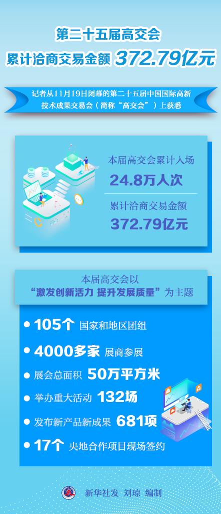 新華社深圳11月19日電(記者陳宇軒)記者從19日閉幕的第二十五屆中國(guó)國(guó)際高新技術(shù)成果交易會(huì)(簡(jiǎn)稱“高交會(huì)”)上獲悉,本屆高交會(huì)累計(jì)入場(chǎng)24.8萬人次,累計(jì)洽商交易金額372.79億元。