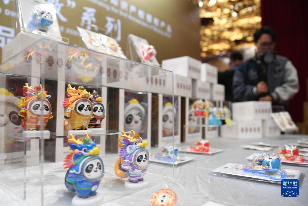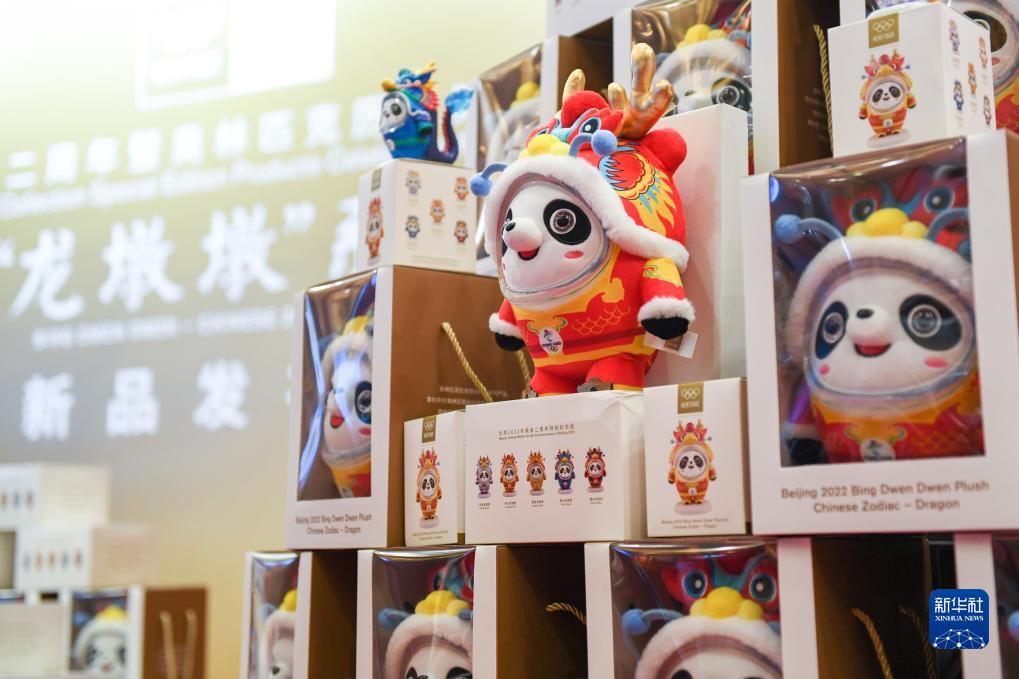 這是11月29日拍攝的“龍墩墩”系列新品。當(dāng)日,“冰墩墩”龍年新春特別版——“龍墩墩”系列新品在國(guó)家體育場(chǎng)金色大廳正式發(fā)布?!褒埗斩铡弊鳛閵W林匹克歷史知識(shí)產(chǎn)權(quán)再次授權(quán)開發(fā)的文創(chuàng)產(chǎn)品,延續(xù)了中國(guó)春節(jié)文化、生肖文化特色,成為弘揚(yáng)奧林匹克精神、創(chuàng)新發(fā)展中國(guó)文化的典型范例。新華社記者 鞠煥宗 攝