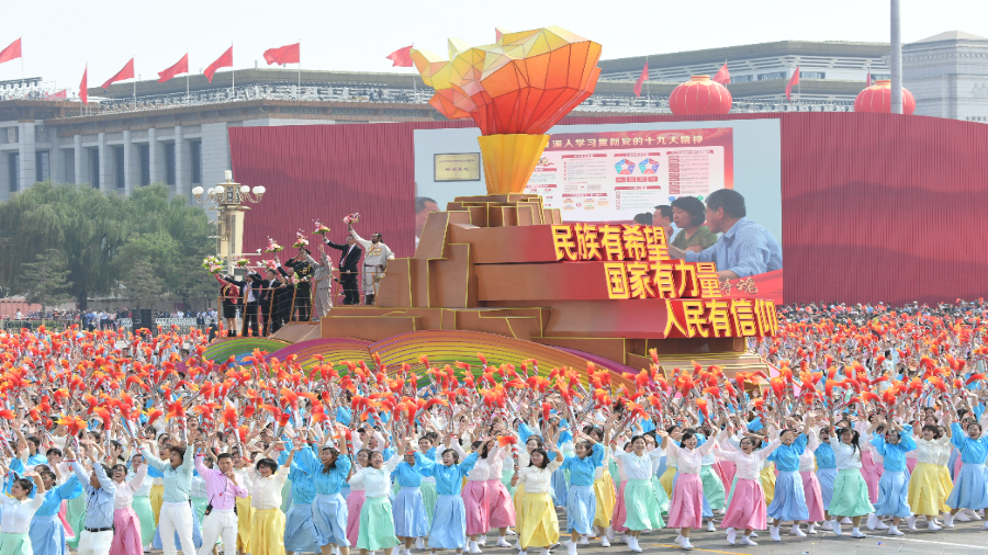篇篇賀詞,團結是“大江南北披上紅色盛裝,人們臉上洋溢著自豪的笑容,《我和我的祖國》在大街小巷傳唱”;是“逆行出征的豪邁”“頑強不屈的堅守”“患難與共的擔當”“英勇無畏的犧牲”“守望相助的感動”;是“廣大軍民不畏艱險,同心協(xié)力抗洪救災”……