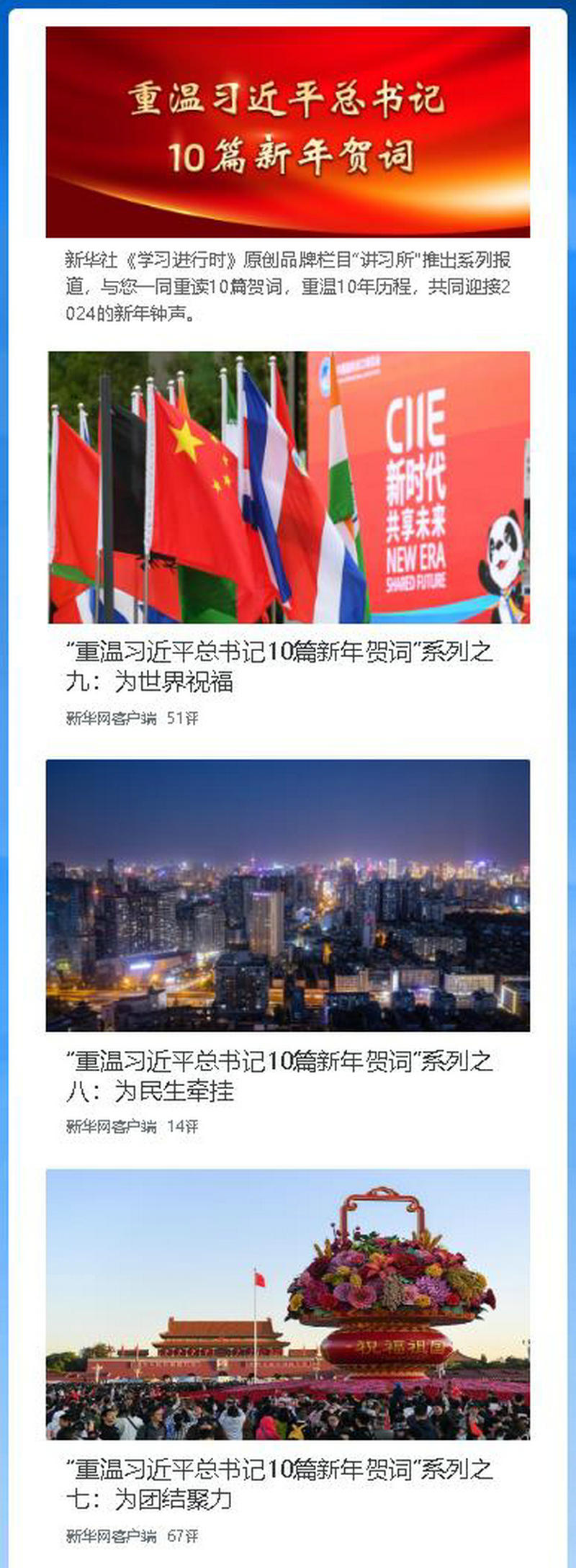 新華社《學(xué)習(xí)進行時》原創(chuàng)品牌欄目“講習(xí)所”推出系列報道,與您一同重讀10篇賀詞,重溫10年歷程,共同迎接2024的新年鐘聲。