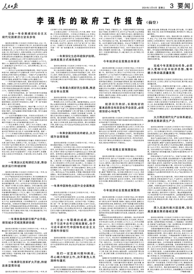 國(guó)務(wù)院總理李強(qiáng)5日在政府工作報(bào)告中指出,綜合分析研判,今年我國(guó)發(fā)展面臨的環(huán)境仍是戰(zhàn)略機(jī)遇和風(fēng)險(xiǎn)挑戰(zhàn)并存,有利條件強(qiáng)于不利因素。