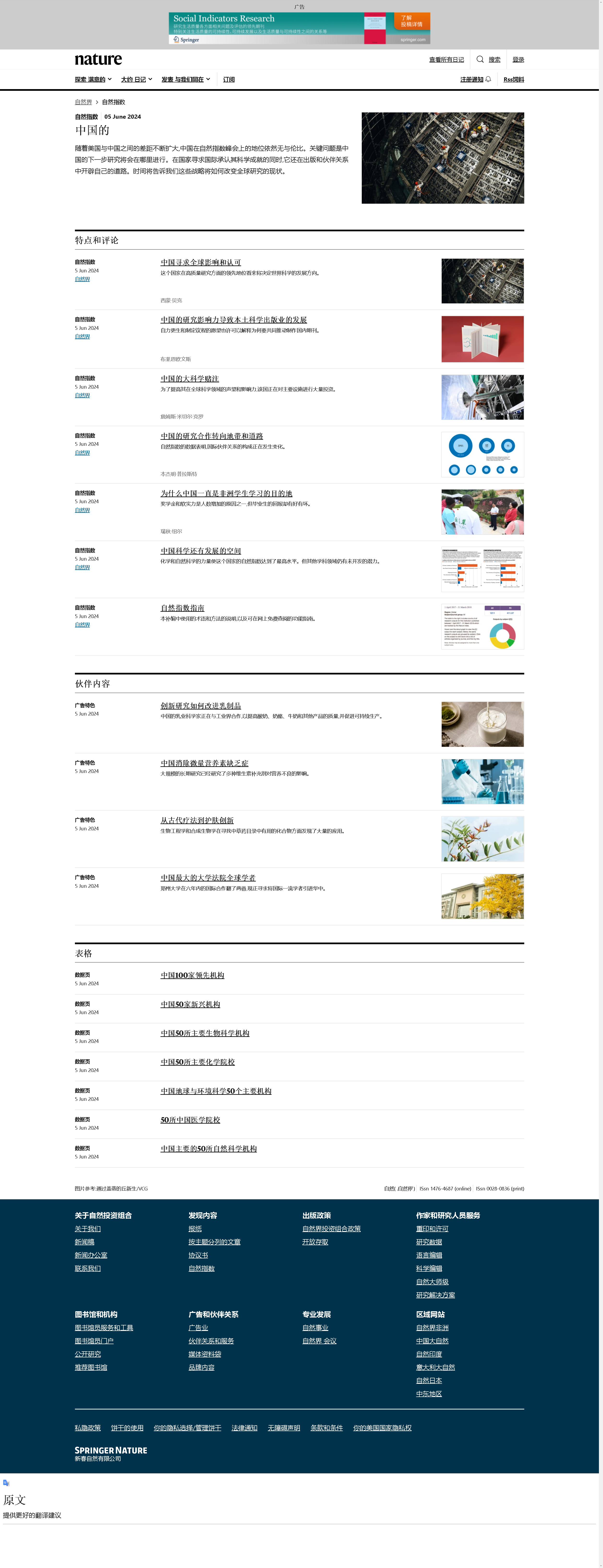 新華社倫敦6月5日電(記者郭爽)英國《自然》雜志網(wǎng)站最新上線的《2024自然指數(shù)-中國》顯示,在自然指數(shù)數(shù)據(jù)庫去年擴(kuò)展后,中國在排名中仍位居第一。