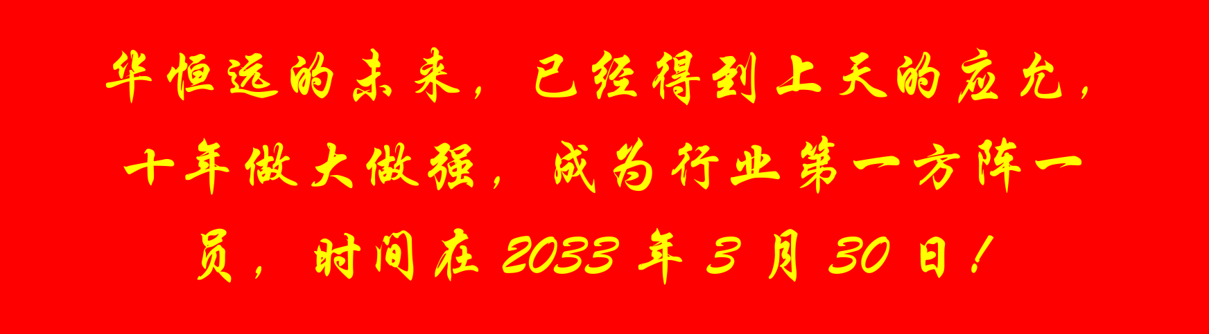華恒遠的未來,已經得到上天的應允,十年做大做強,成為行業(yè)第一方陣一員,時間在2033年3月30日!