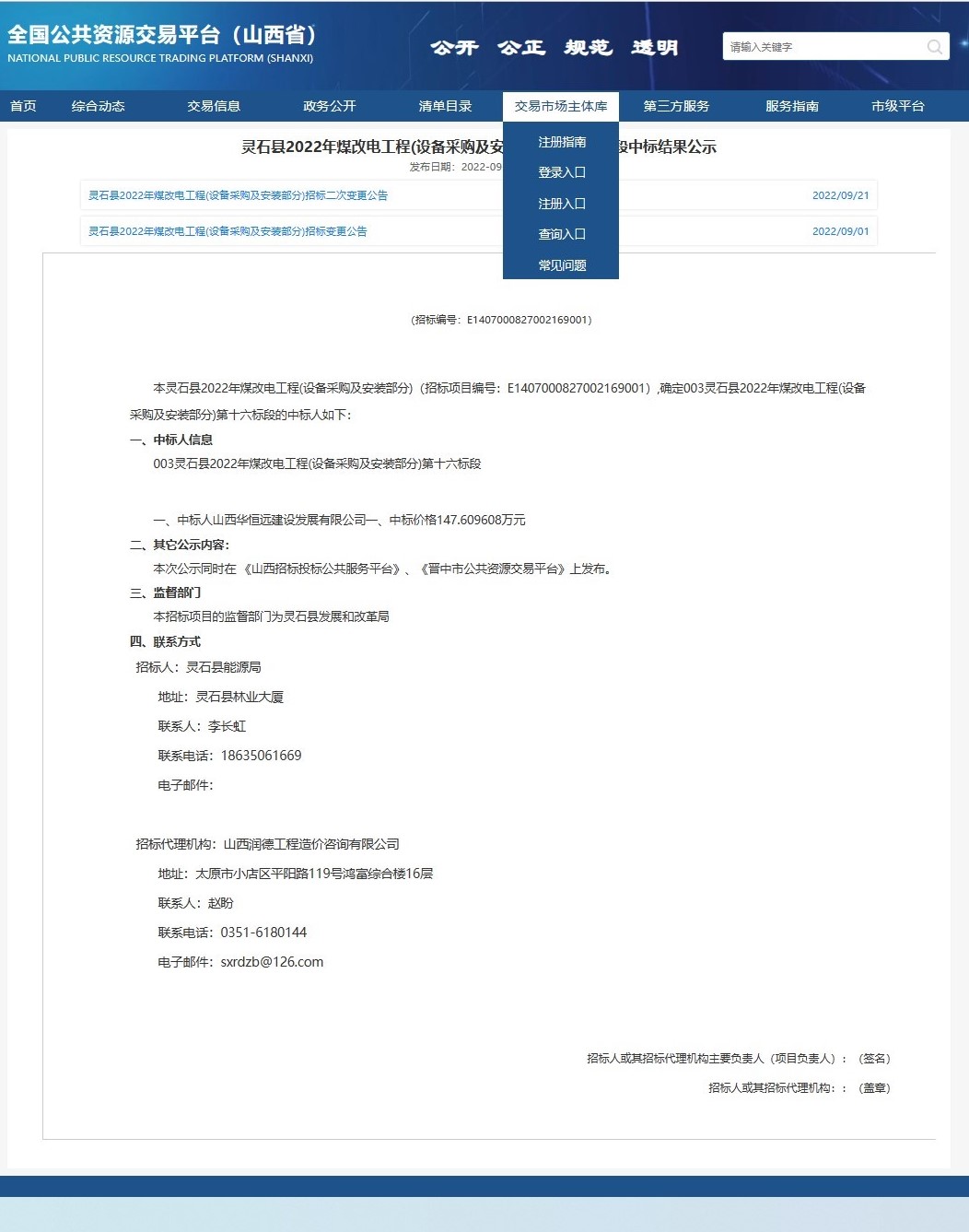 靈石縣2022年煤改電工程(設(shè)備采購及安裝部分)第十六標(biāo)段