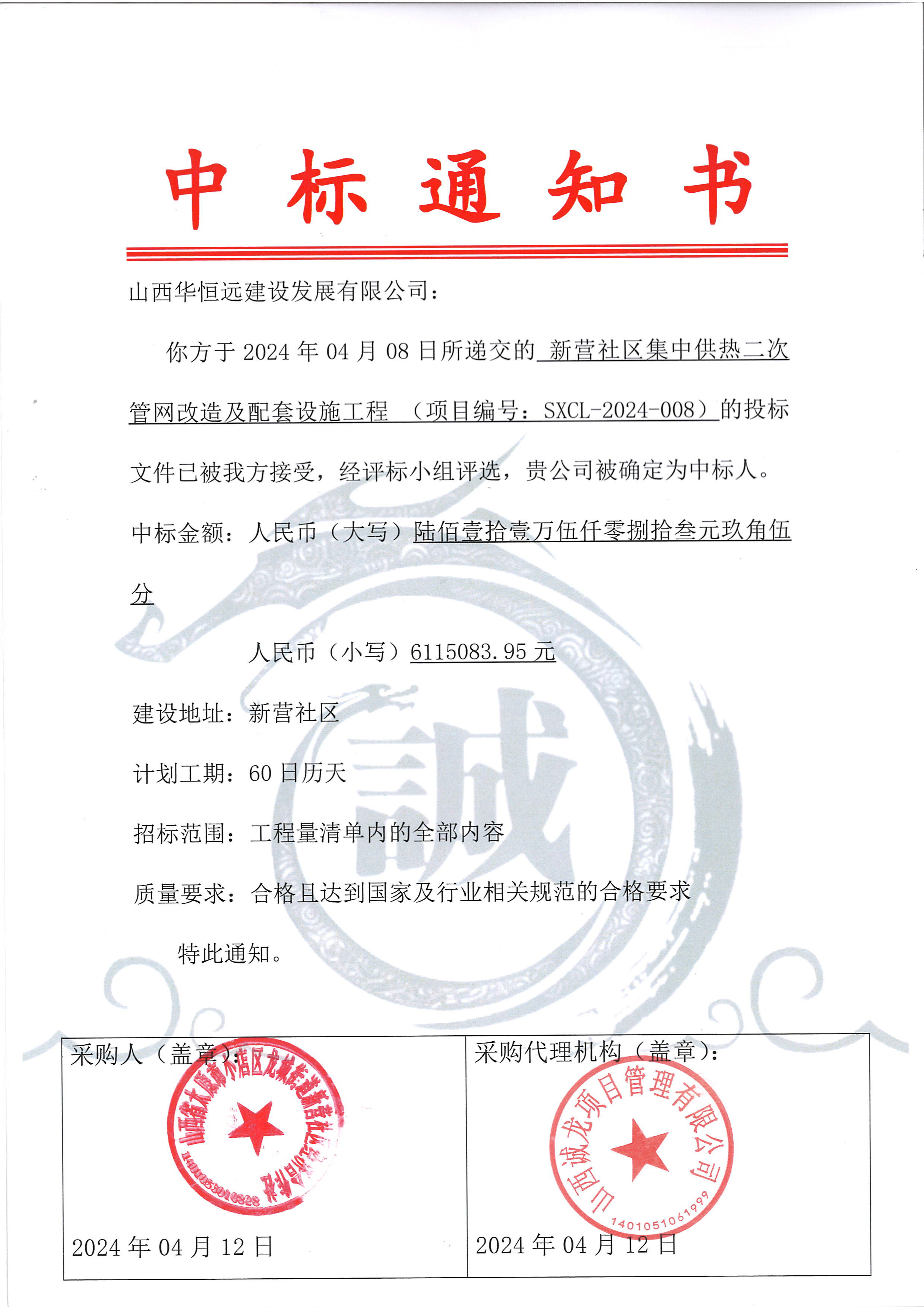 新?tīng)I(yíng)社區(qū)集中供熱二次管網(wǎng)改造及配套設(shè)施工程