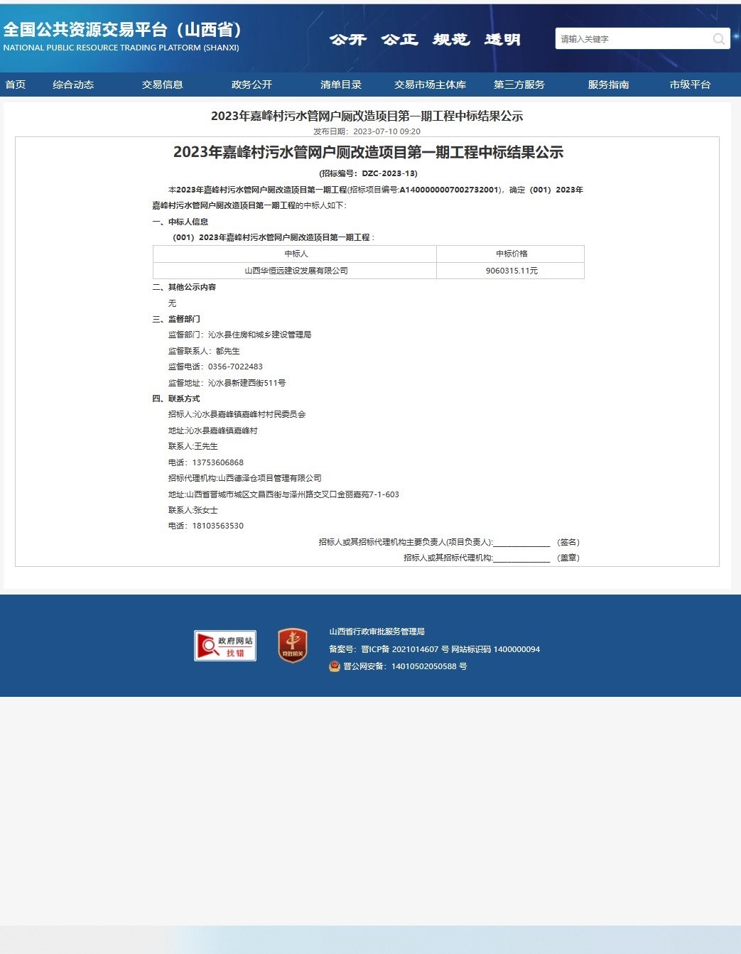 2023年嘉峰村污水管網(wǎng)戶廁改造項目第一期工程