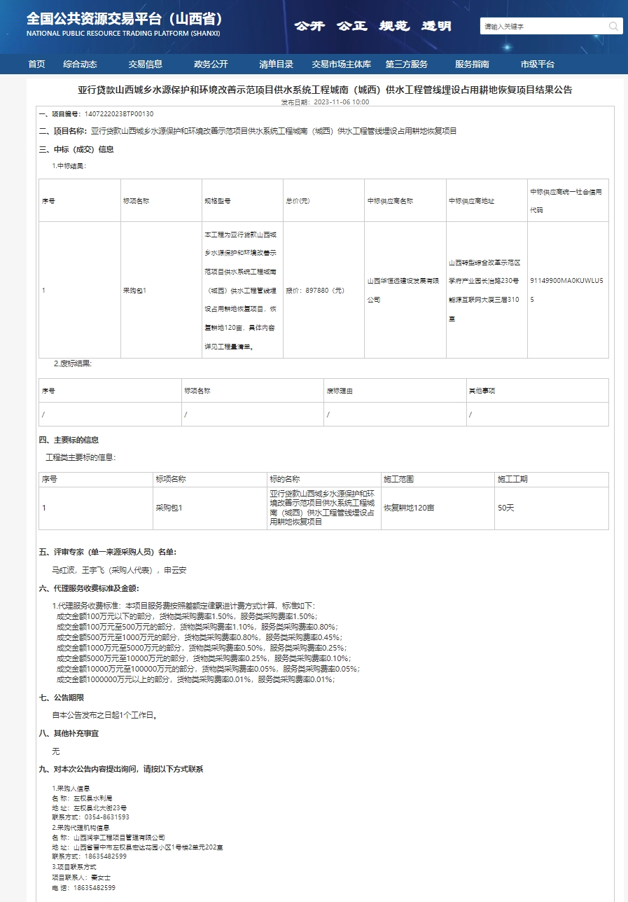 亞行貸款山西城鄉(xiāng)水源保護和環(huán)境改善示范項目供水系統(tǒng)工程城南(城西)供水工程管線埋設(shè)占用耕地恢復(fù)項目