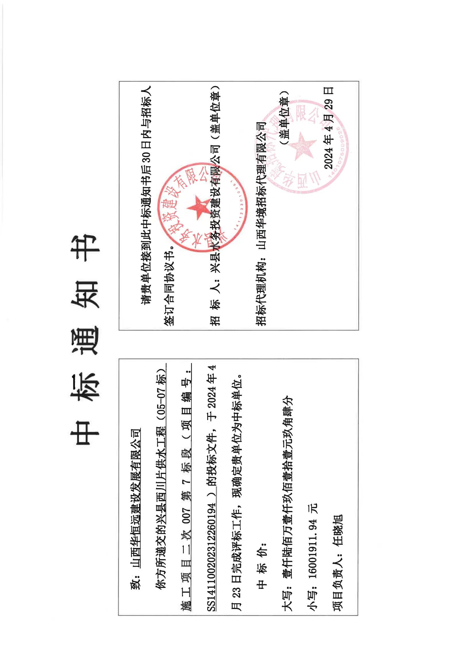 2024年興縣西川片供水工程(05-07 標)施工項目二次007第7標段