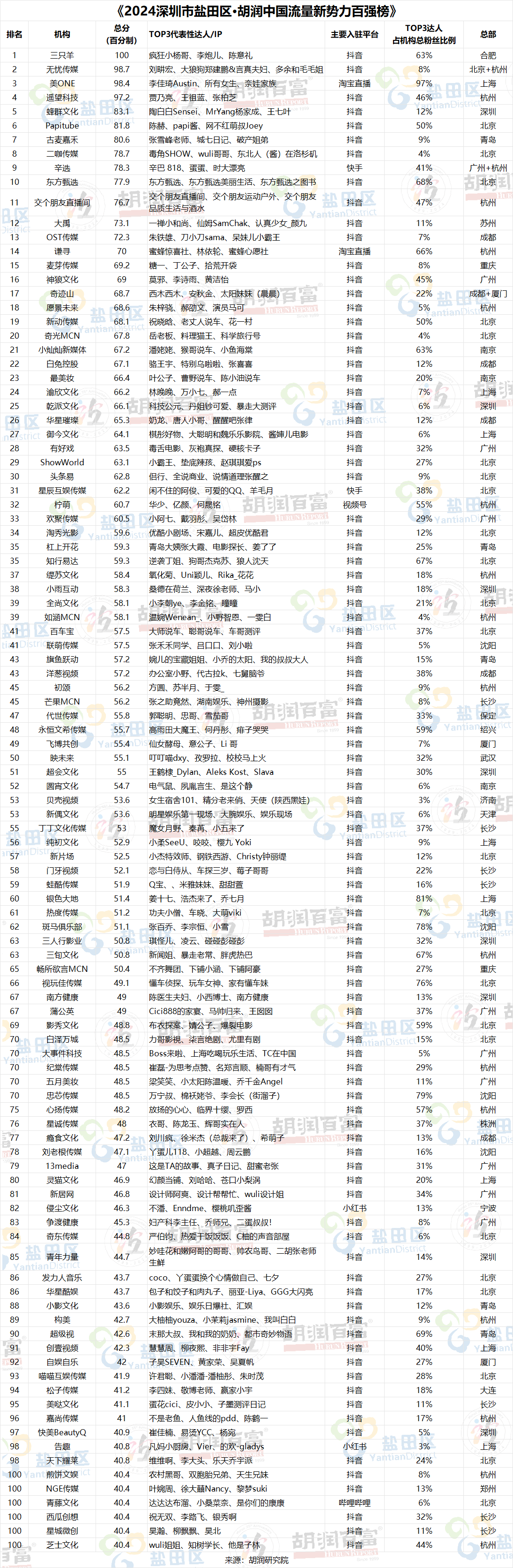 2024深圳市鹽田區(qū)·胡潤(rùn)中國(guó)流量新勢(shì)力百?gòu)?qiáng)榜