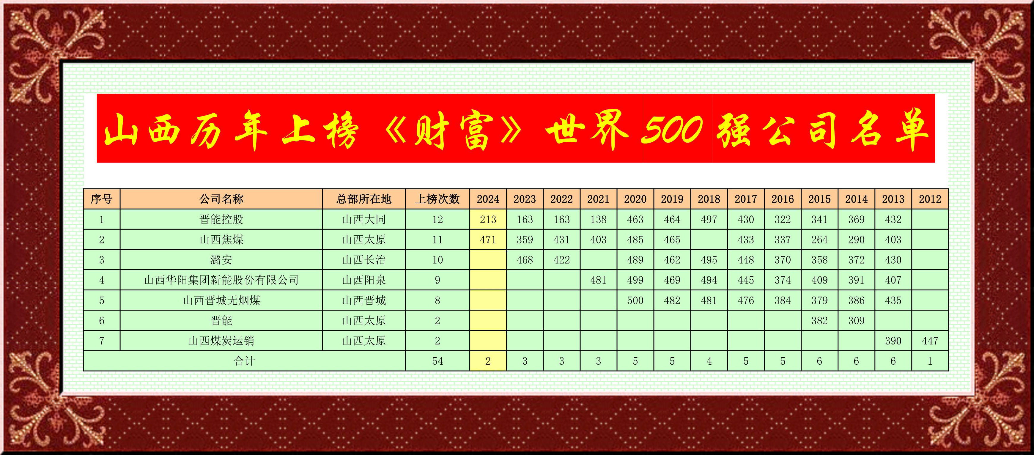 【行業(yè)動態(tài)】山西歷年上榜《財富》世界500強公司名單