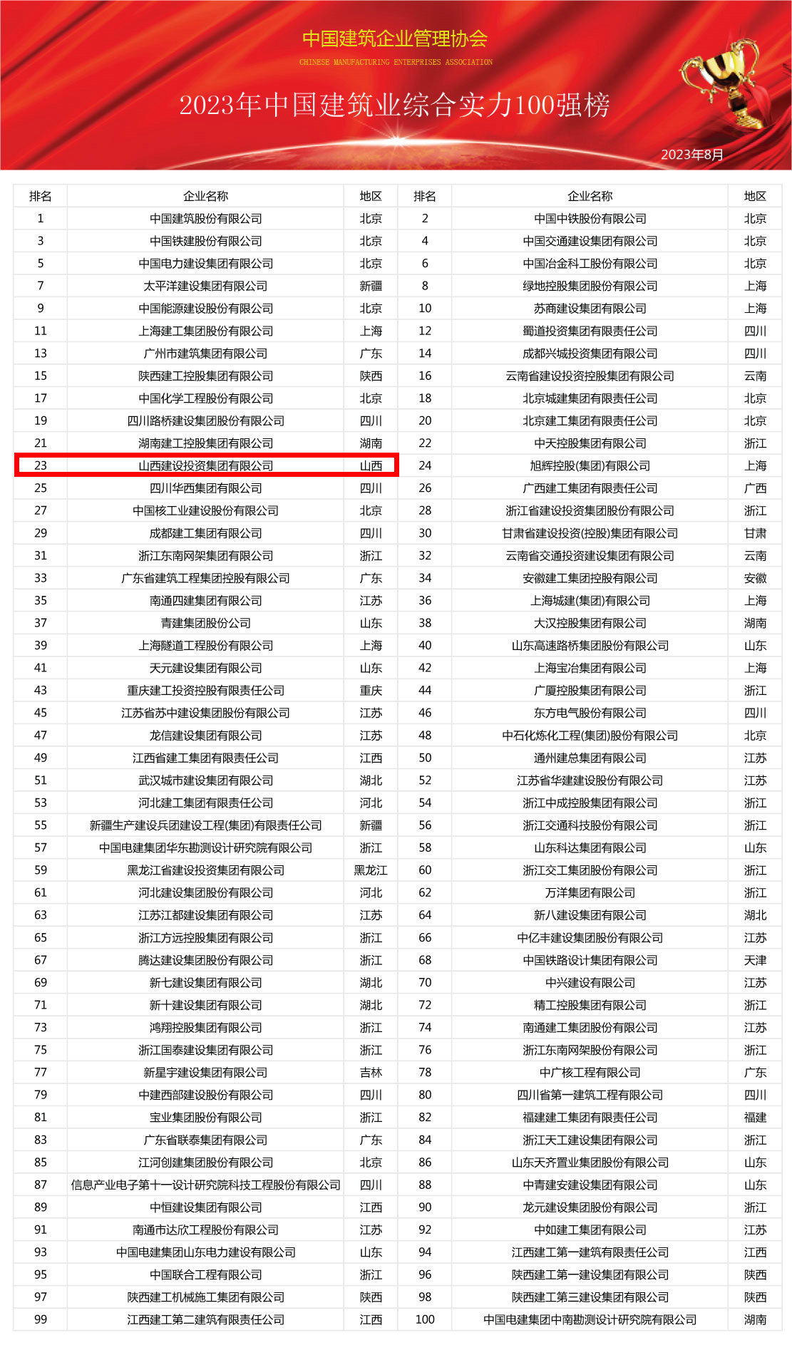 2024年中國建筑業(yè)綜合實力100強榜震撼發(fā)布,共筑行業(yè)新輝煌(圖1)