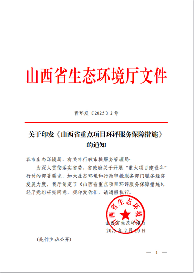 本報(bào)訊(記者程國媛)為深入貫徹落實(shí)省委、省政府關(guān)于開展“重大項(xiàng)目建設(shè)年”行動(dòng)的部署要求,2月10日,省生態(tài)環(huán)境廳印發(fā)《山西省重點(diǎn)項(xiàng)目環(huán)評服務(wù)保障措施》的通知,共3方面11項(xiàng)措施,從健全服務(wù)專班、精簡審批程序、統(tǒng)籌推進(jìn)環(huán)評工作3方面入手,切實(shí)服務(wù)重點(diǎn)項(xiàng)目落地見效。