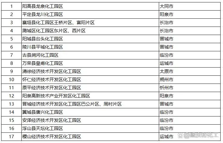 山西省化工園區(qū)(第三批)認(rèn)定名單