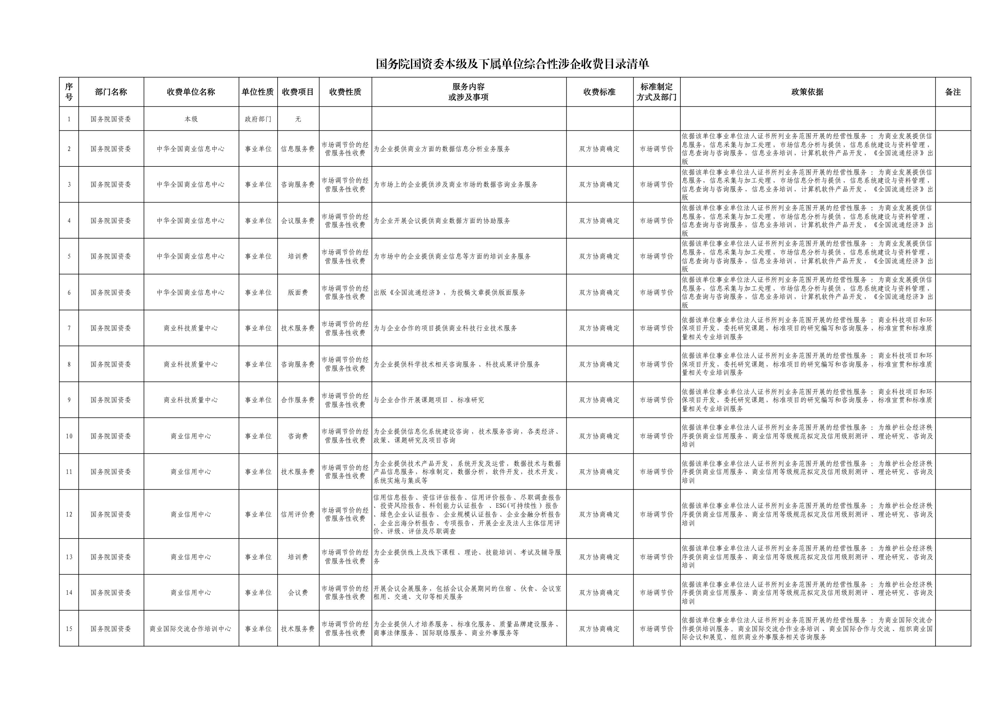 國(guó)務(wù)院國(guó)資委本級(jí)及下屬單位綜合性涉企收費(fèi)目錄清單