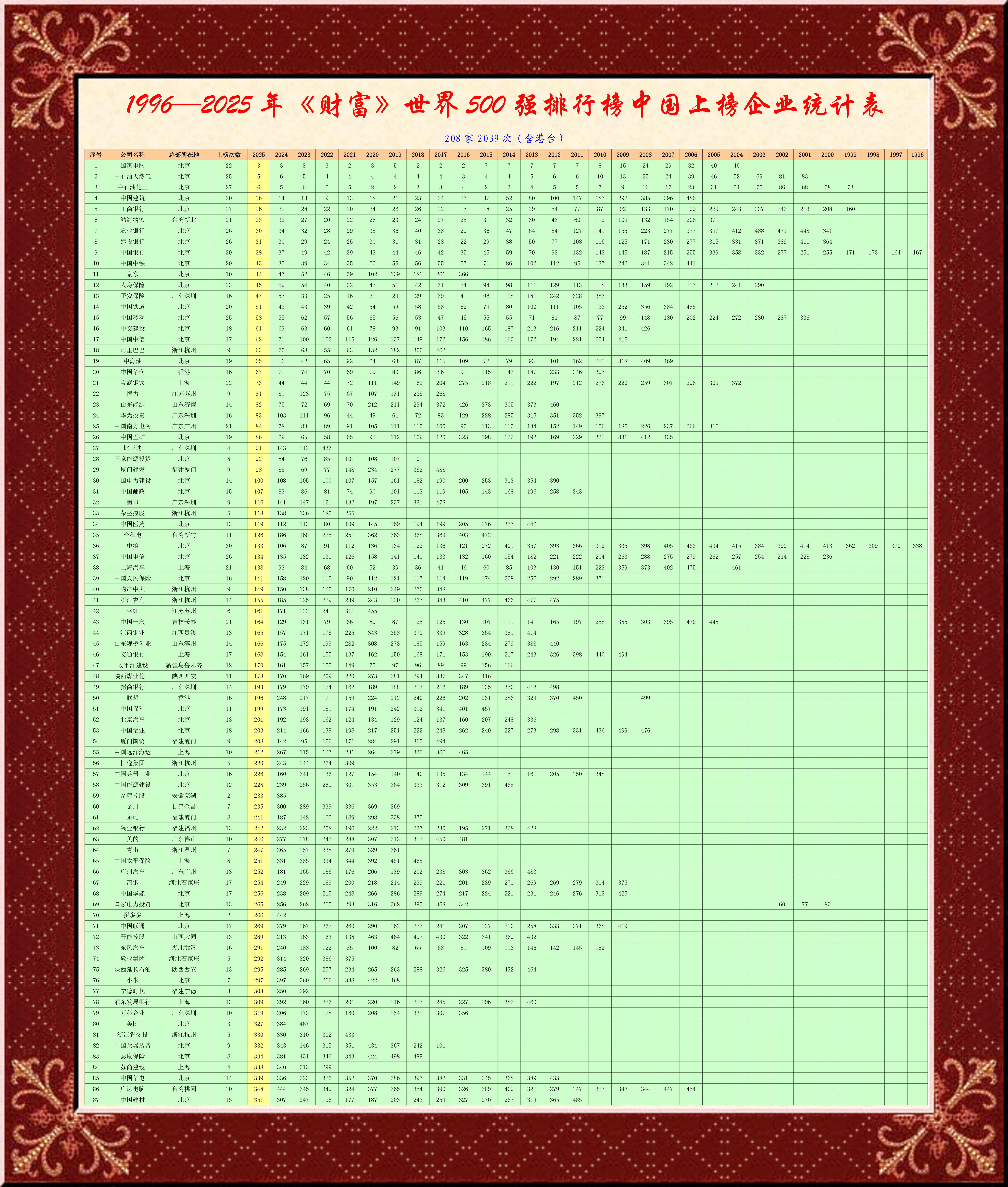 2025年《財(cái)富》世界500強(qiáng)的130家中國(guó)企業(yè)名錄