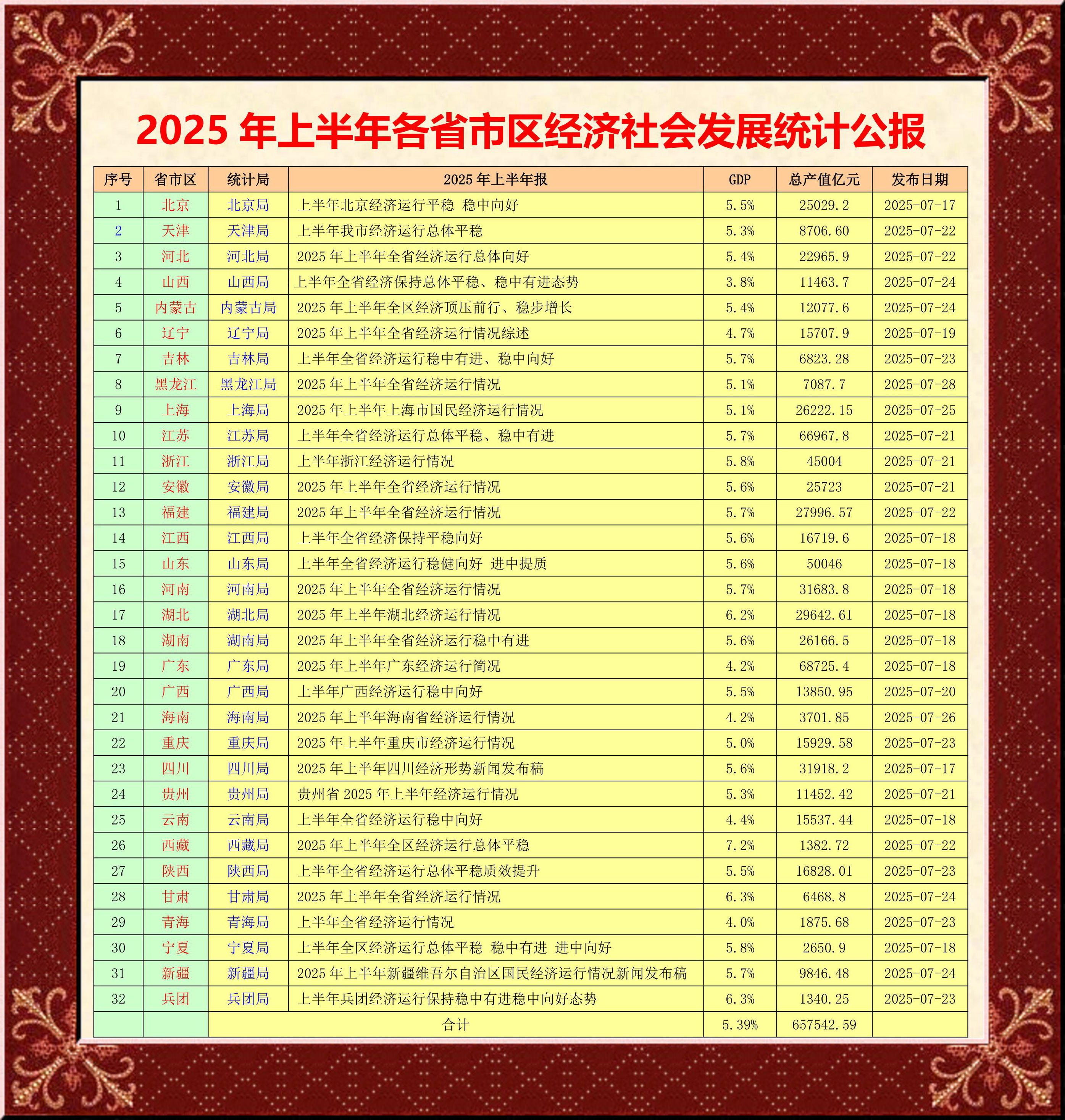 31省份上半年經濟數據均已揭曉。各地經濟頂壓前行、穩(wěn)定運行,在復雜環(huán)境中展現出較強韌性,高質量發(fā)展穩(wěn)步推進,22個省份增速達到“全國線”(5.3%)及以上水平,交出一份來之不易的“期中成績單”。