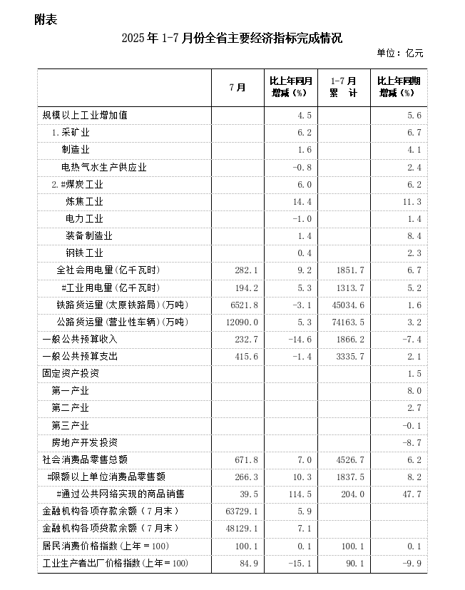 總的來看,在宏觀政策持續(xù)發(fā)力顯效和全省上下共同努力下,1-7月份全省經(jīng)濟(jì)運(yùn)行頂住壓力、平穩(wěn)增長。同時(shí)也要看到,部分行業(yè)領(lǐng)域增速有所回落,下階段經(jīng)濟(jì)延續(xù)穩(wěn)定增長勢頭仍存壓力。下一步,要深入學(xué)習(xí)貫徹習(xí)近平總書記考察山西重要講話重要指示精神,按照省委十二屆十次全會部署安排,堅(jiān)定落實(shí)各項(xiàng)宏觀政策,深入實(shí)施提振消費(fèi)專項(xiàng)行動,擴(kuò)圍提質(zhì)實(shí)施“兩新”政策,積極擴(kuò)大有效投資,高質(zhì)量推動“兩重”建設(shè),奮力推動全省經(jīng)濟(jì)持續(xù)穩(wěn)定運(yùn)行、回升向好。