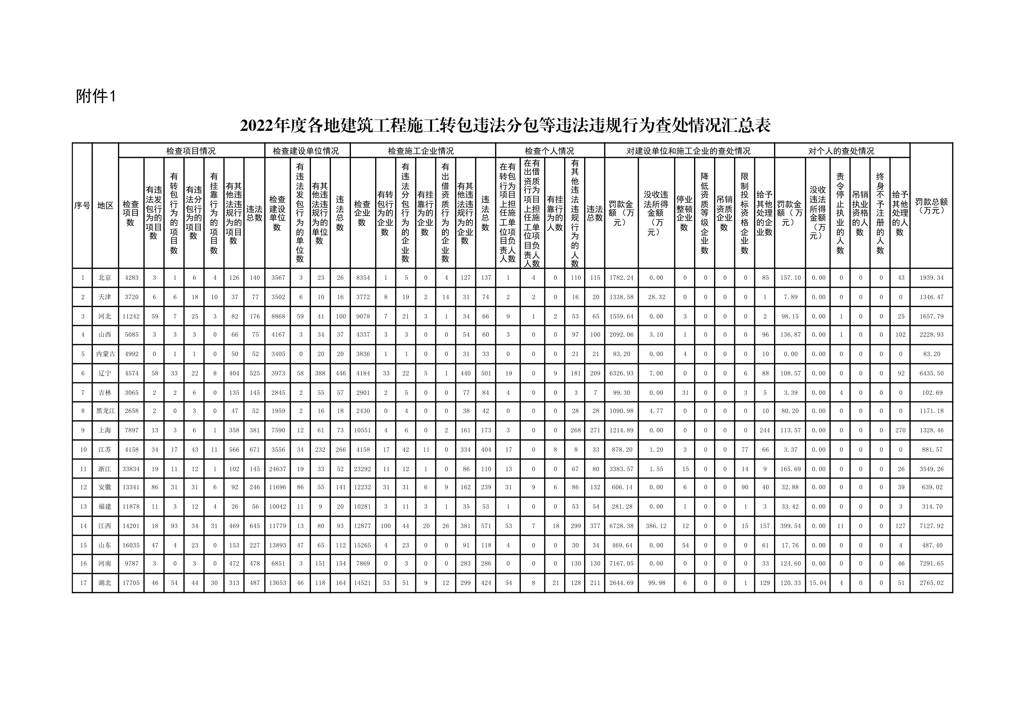 住房和城鄉(xiāng)建設(shè)部近日通報(bào)2022年度各地住房和城鄉(xiāng)建設(shè)主管部門對建筑工程施工轉(zhuǎn)包違法分包等違法違規(guī)行為查處情況及住房和城鄉(xiāng)建設(shè)部轉(zhuǎn)各地建筑工程施工違法違規(guī)行為舉報(bào)投訴案件查處情況。