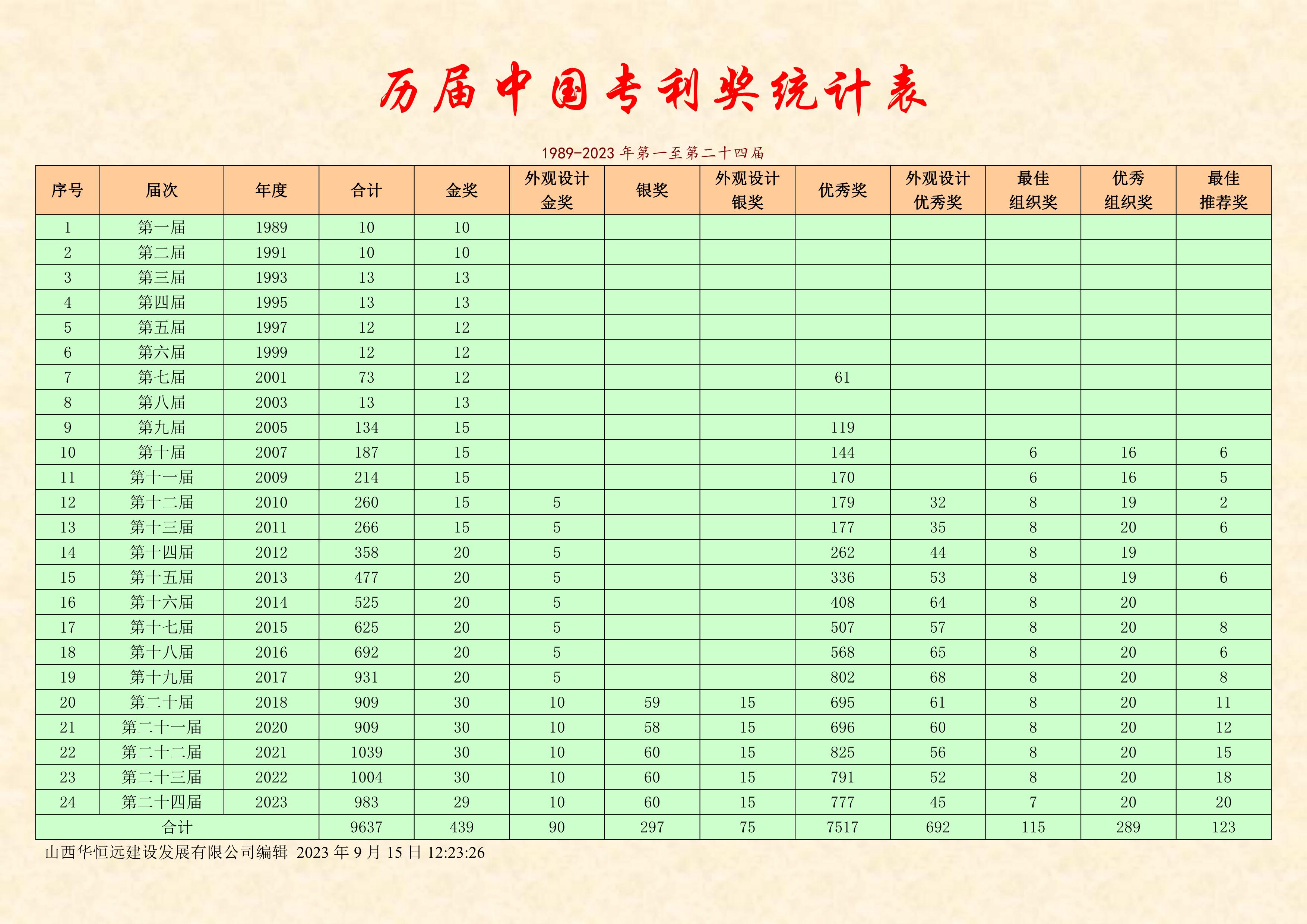 中國專利獎的評選活動由國家知識產(chǎn)權(quán)局與世界知識產(chǎn)權(quán)組織共同開展,2010年起由每兩年舉辦一屆改為每年舉辦一屆。