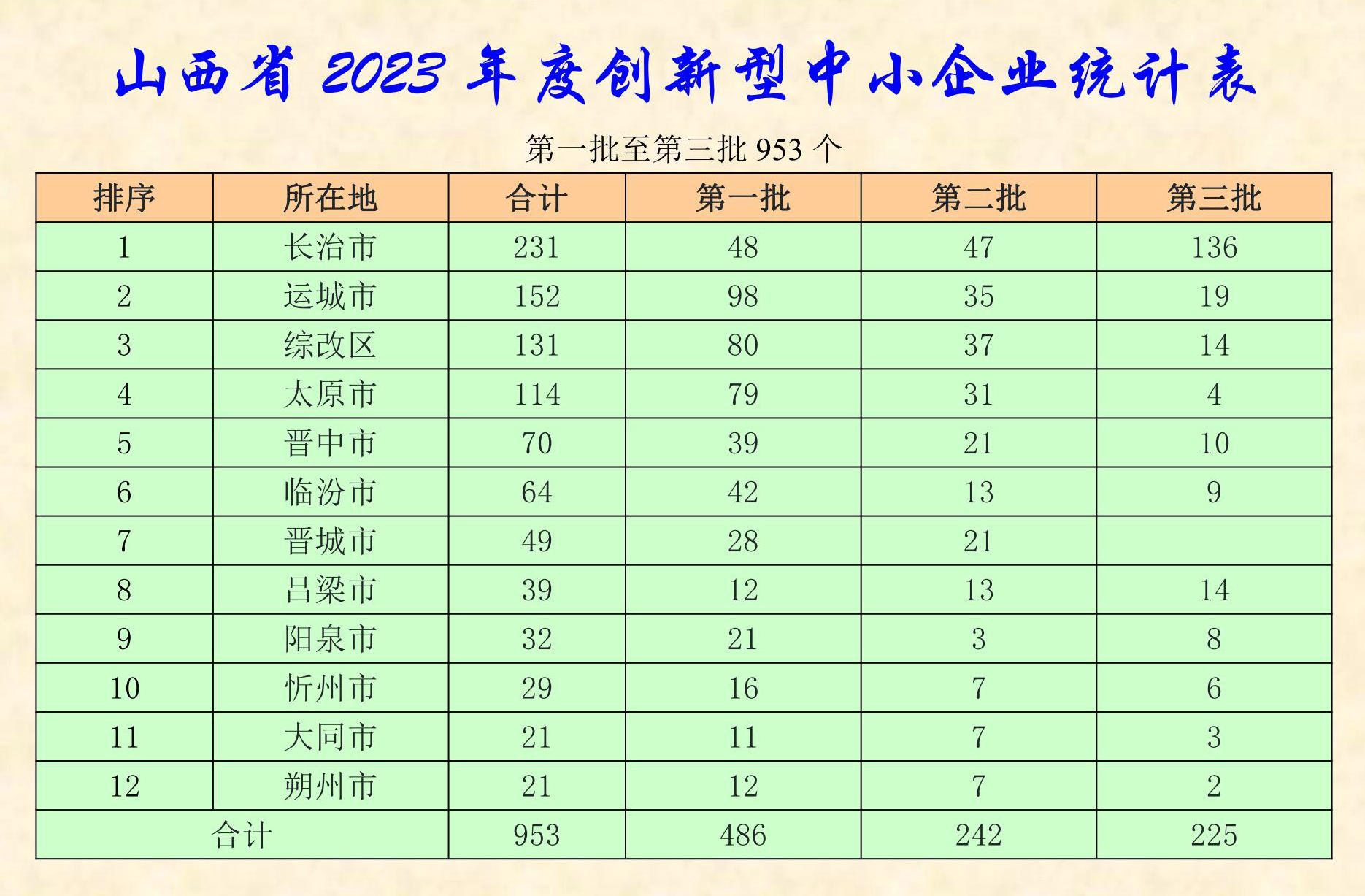 山西省2023年度第三批創(chuàng)新型中小企業(yè)名單