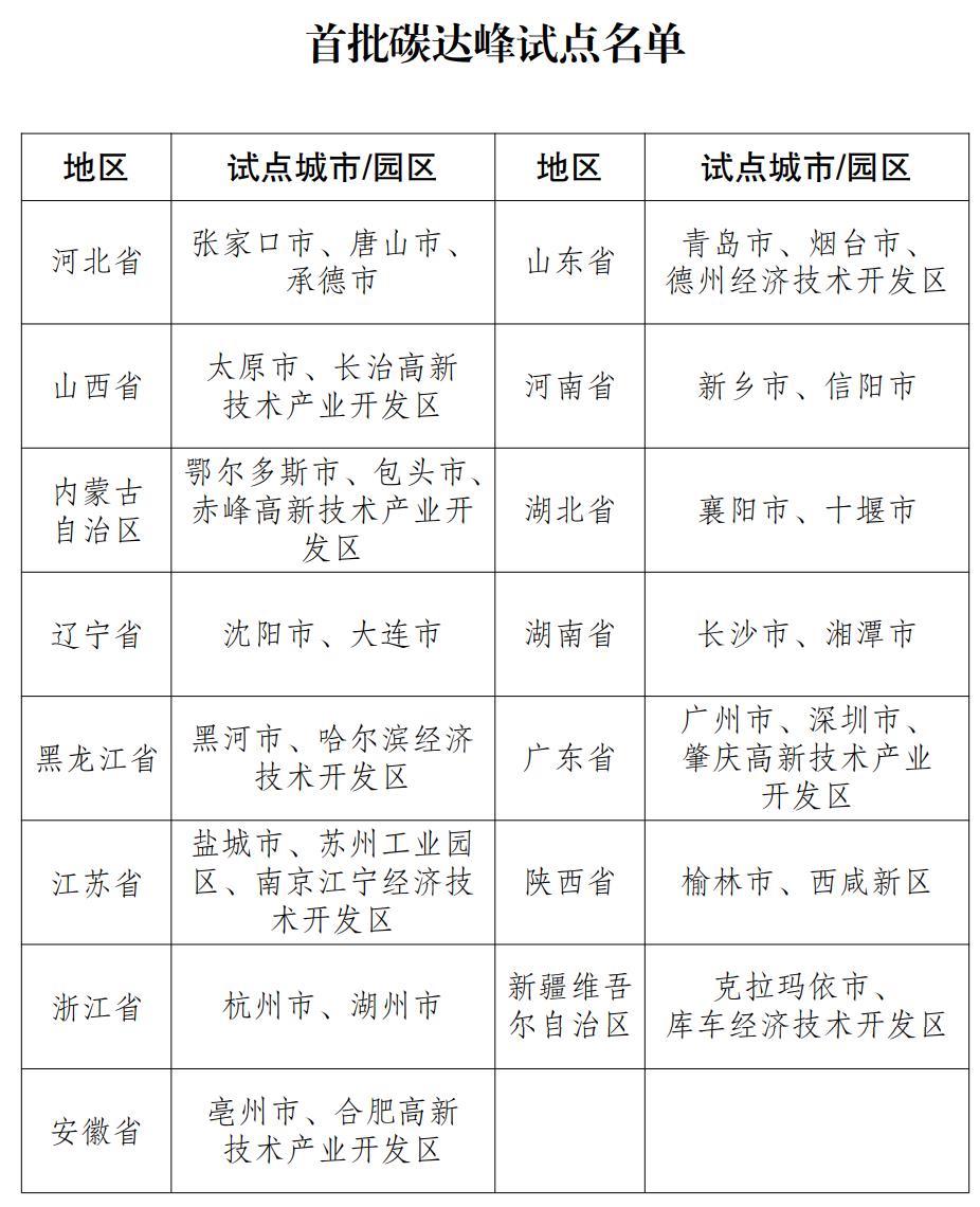 印發(fā)首批碳達(dá)峰試點名單的通知