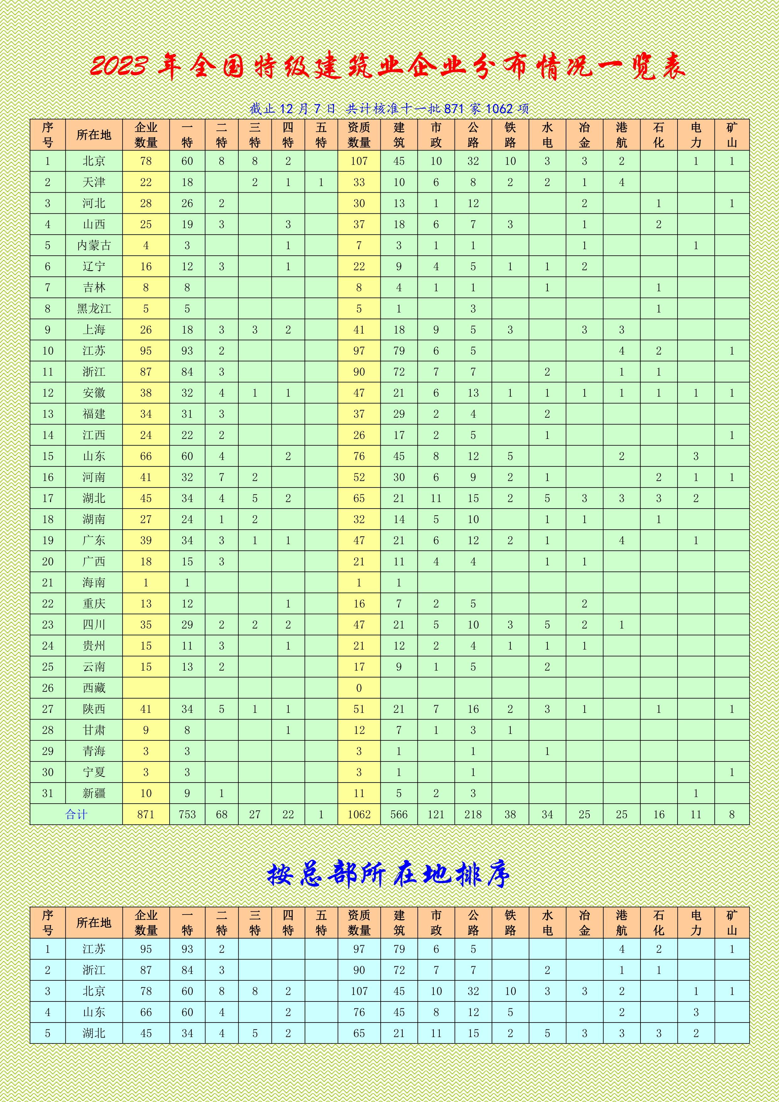 根據(jù)《中華人民共和國(guó)建筑法》及有關(guān)建設(shè)工程企業(yè)資質(zhì)管理規(guī)定,現(xiàn)將我部核準(zhǔn)的工程勘察資質(zhì)、工程設(shè)計(jì)資質(zhì)、建筑業(yè)企業(yè)資質(zhì)、工程監(jiān)理企業(yè)資質(zhì)的單位名單(2023年度第十一批)予以公布。未予核準(zhǔn)的單位可登錄住房城鄉(xiāng)建設(shè)部政務(wù)服務(wù)門(mén)戶(hù),點(diǎn)擊“申請(qǐng)事項(xiàng)辦理進(jìn)度查詢(xún)(受理發(fā)證信息查詢(xún))”欄目查詢(xún)?cè)颉?