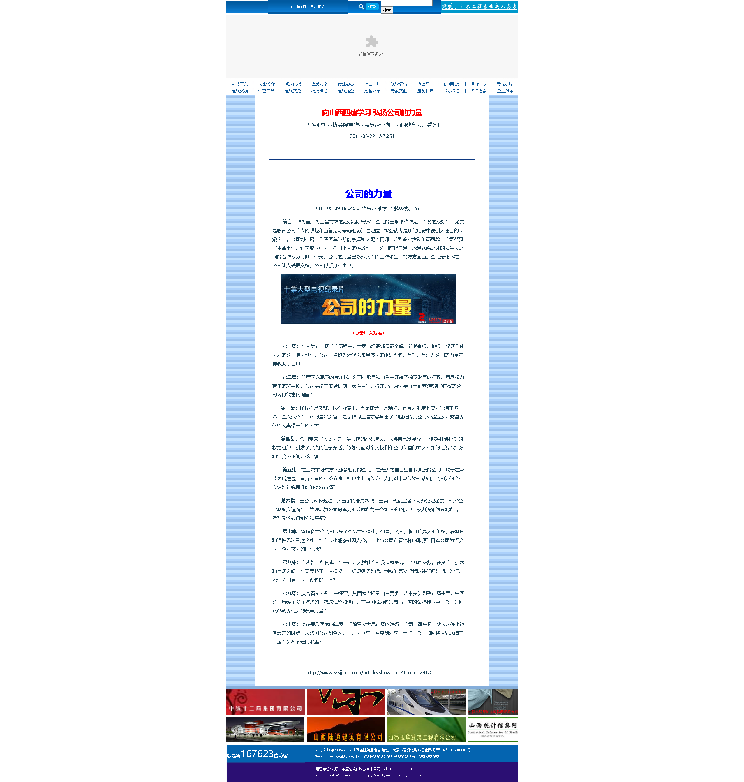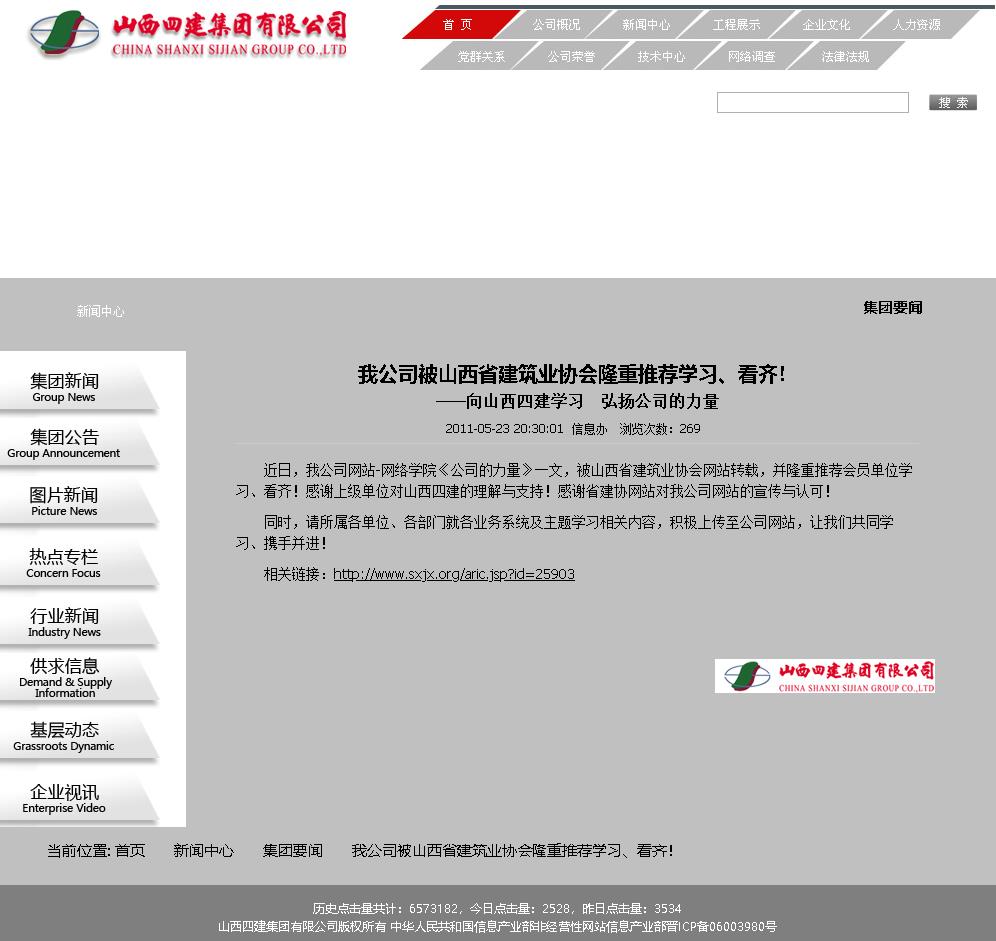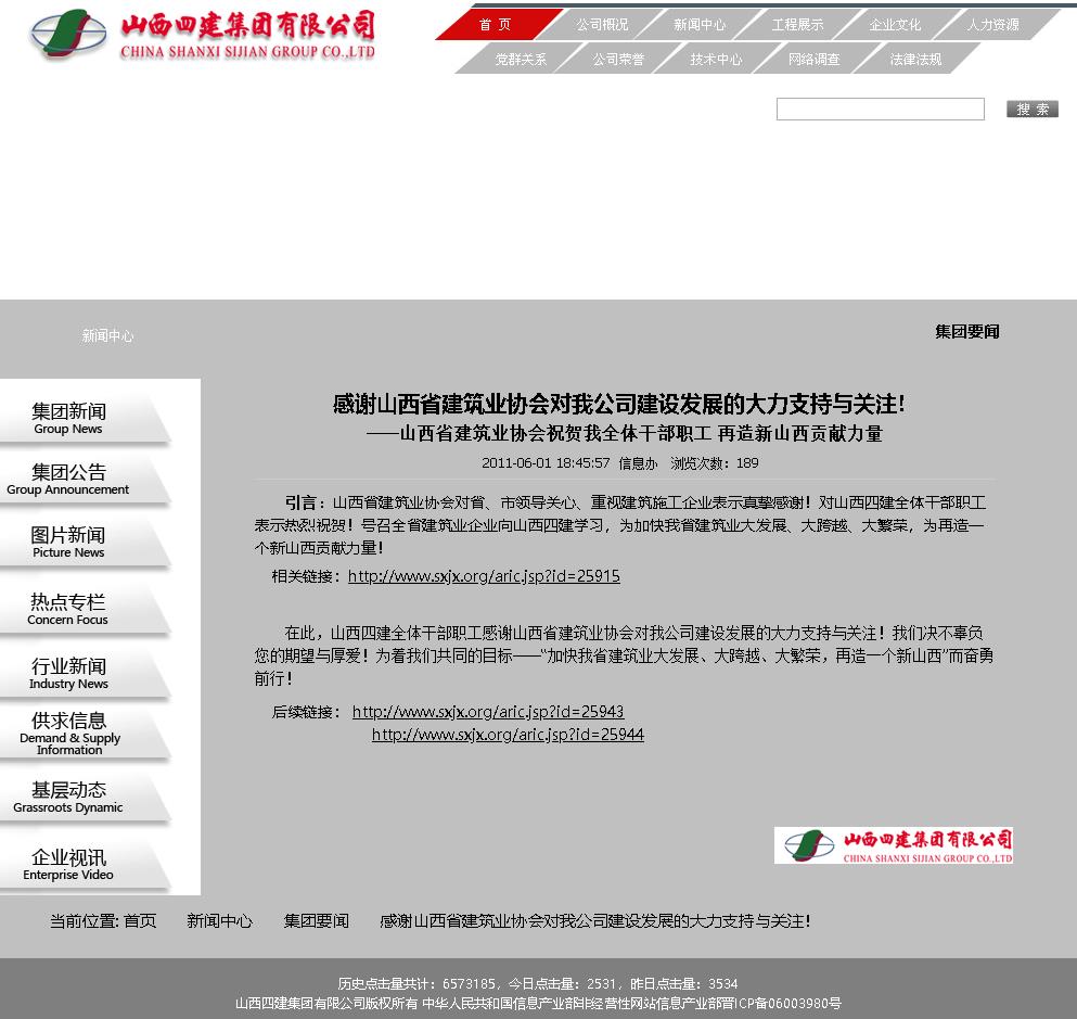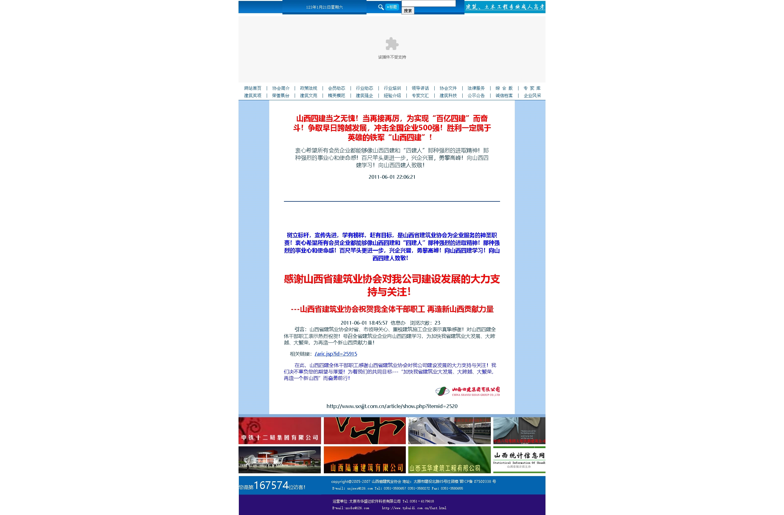 山西四建集團(tuán)有限公司作為山西建筑業(yè)行業(yè)標(biāo)桿,關(guān)注他們是我?guī)资甑牧?xí)慣,一直把這個(gè)企業(yè)的靈魂文化看成是行業(yè)的風(fēng)向標(biāo)和榜樣。尤其特別關(guān)注他們每年的新春賀詞,我在建協(xié)負(fù)責(zé)網(wǎng)站時(shí),多次表?yè)P(yáng)他們,鼓勵(lì)他們,支持他們!你進(jìn)他們的網(wǎng)站看看,現(xiàn)在怎么樣,存在什么問(wèn)題,如何解決?你有什么感悟,有什么高明的真知灼見(jiàn)呢?