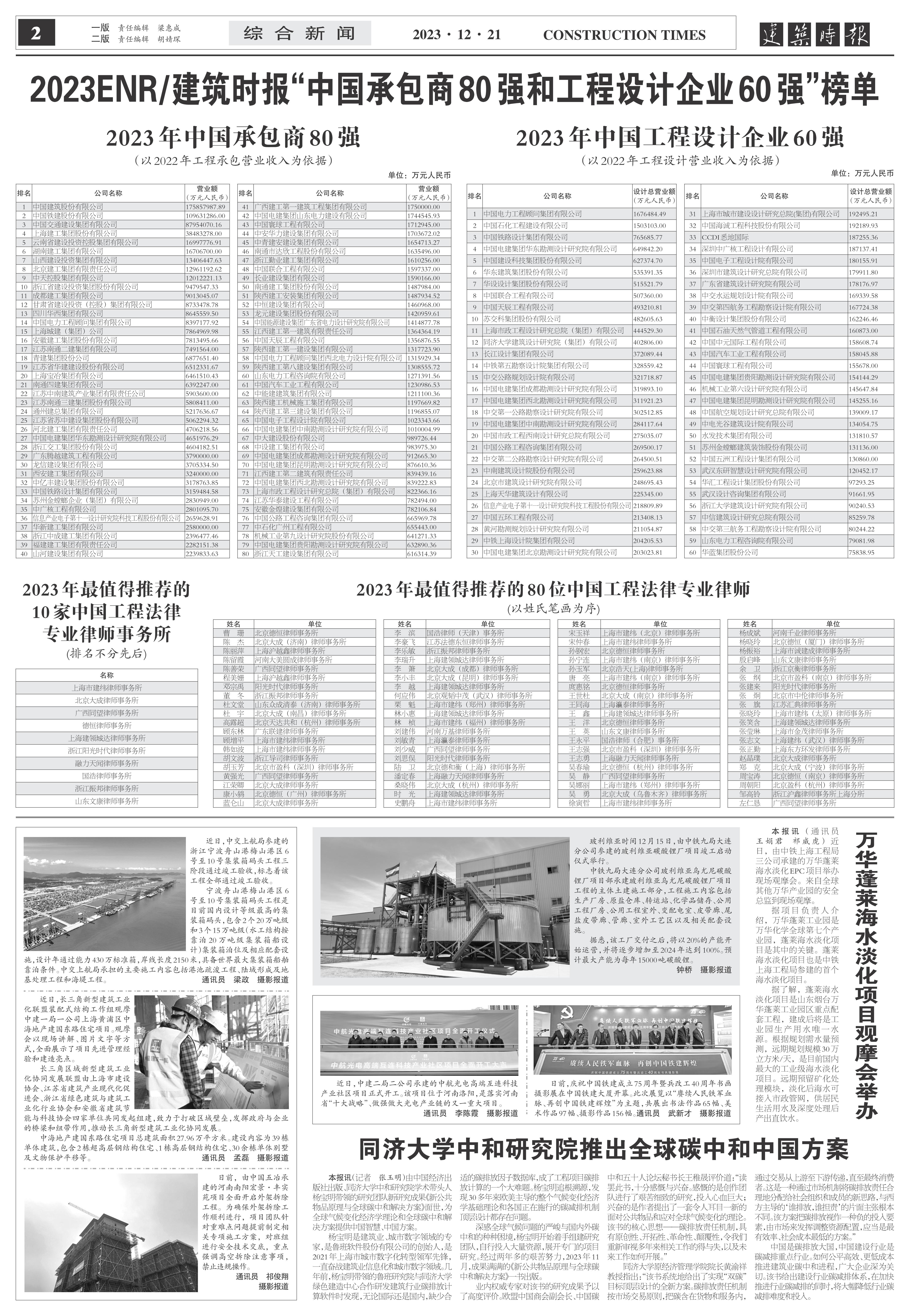 近日,《建筑時報》和美國《工程新聞記錄》(ENR)共同發(fā)布2023ENR/建筑時報“中國承包商80強(qiáng)和工程設(shè)計企業(yè)60強(qiáng)”排名榜單。
