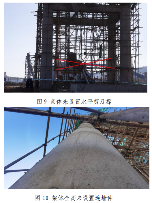 調(diào)查報(bào)告顯示該事故的直接原因?yàn)椋<苤误w系立桿縱橫向間距過大,立桿軸向應(yīng)力嚴(yán)重超過鋼管標(biāo)準(zhǔn)設(shè)計(jì)值;模架支撐體系水平桿步距過大,架體未設(shè)置水平剪刀撐,架體高寬比不滿足規(guī)范要求且全高未設(shè)置連墻件,架體與框架結(jié)構(gòu)未形成有效連接,降低了腳手架的整體穩(wěn)定性。