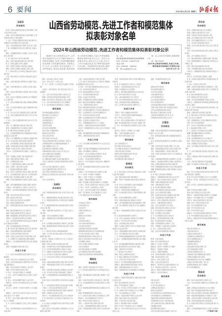 2024年山西省勞動模范、先進(jìn)工作者和模范集體擬表彰對象公示