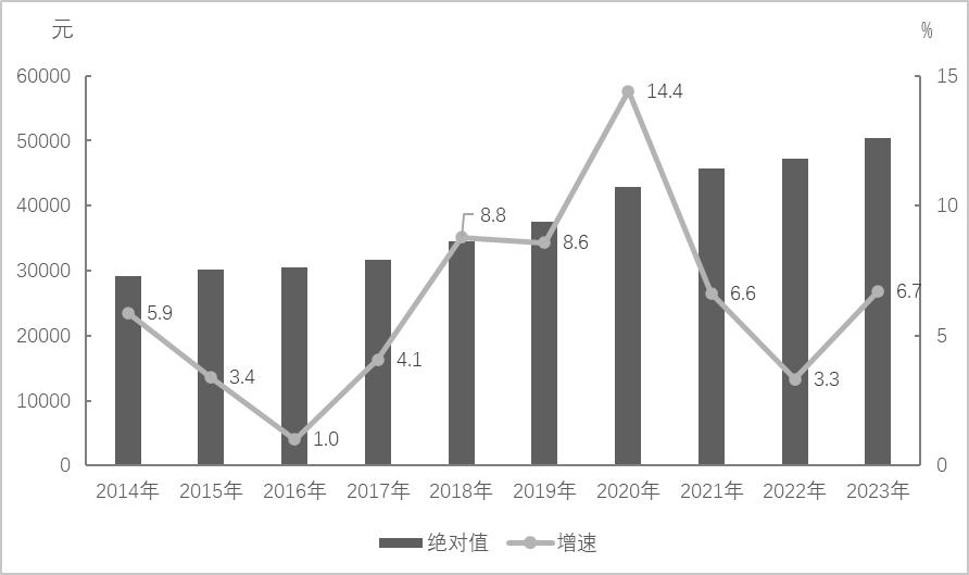 2023年山西省城鎮(zhèn)私營單位就業(yè)人員年平均工資50452元