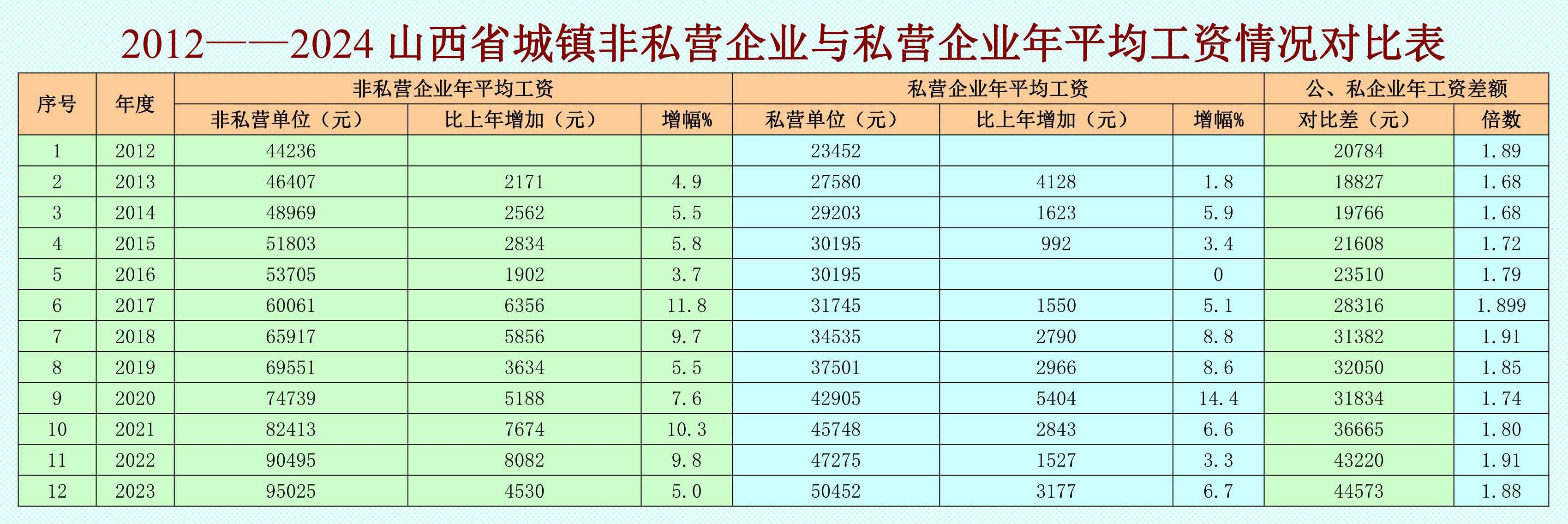 2023年山西省城鎮(zhèn)私營單位就業(yè)人員年平均工資為50452元,比上年增加3177元,名義增長[1]6.7%。扣除價格因素,實際增長6.8%。