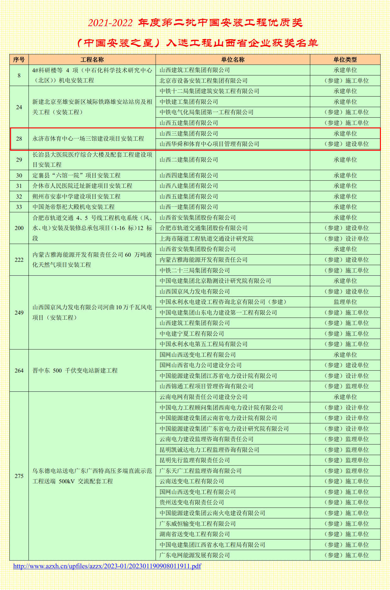 中國安裝協(xié)會公布了2021-2022年度第二批中國安裝工程優(yōu)質(zhì)獎評選結(jié)果