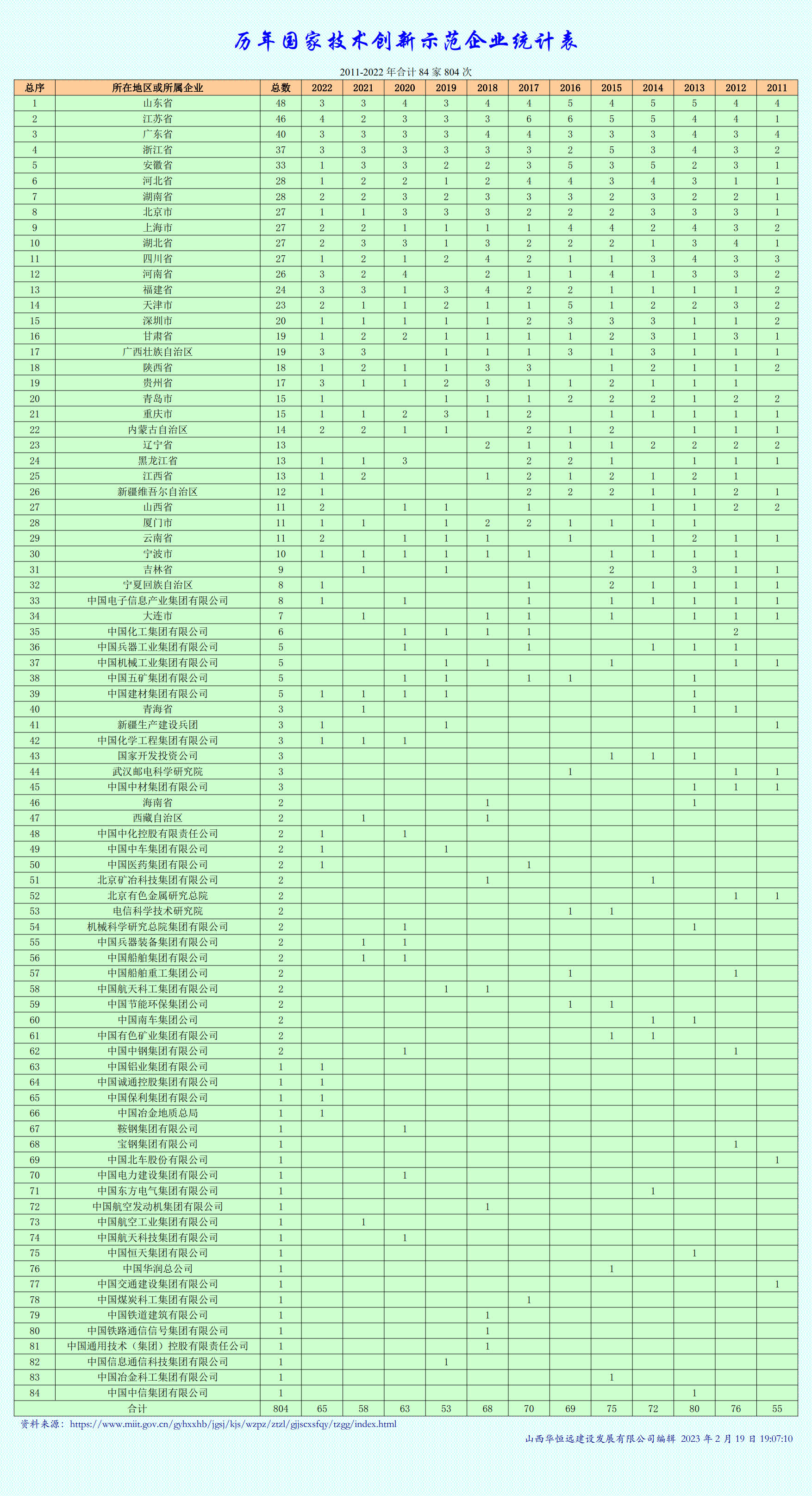 2011-2022國(guó)家技術(shù)創(chuàng)新示范