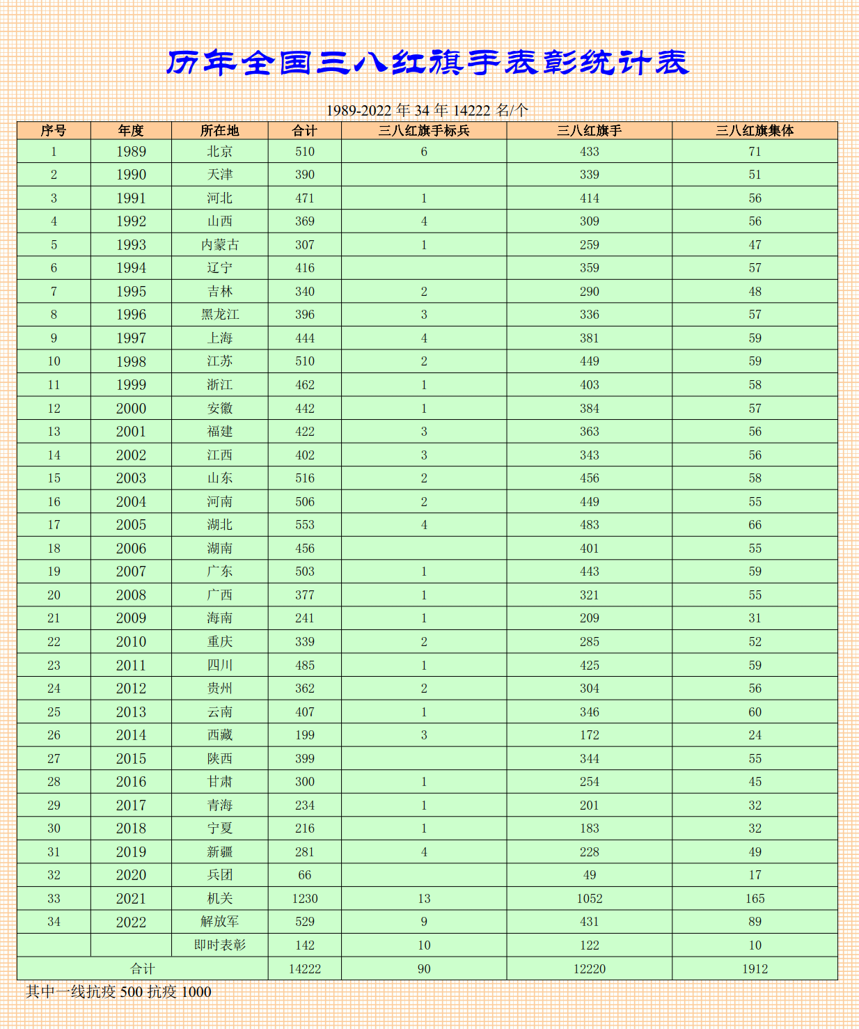 1989-2021年山西省榮獲全國三八紅旗手標(biāo)兵、三八紅旗手、三八紅旗集體名單