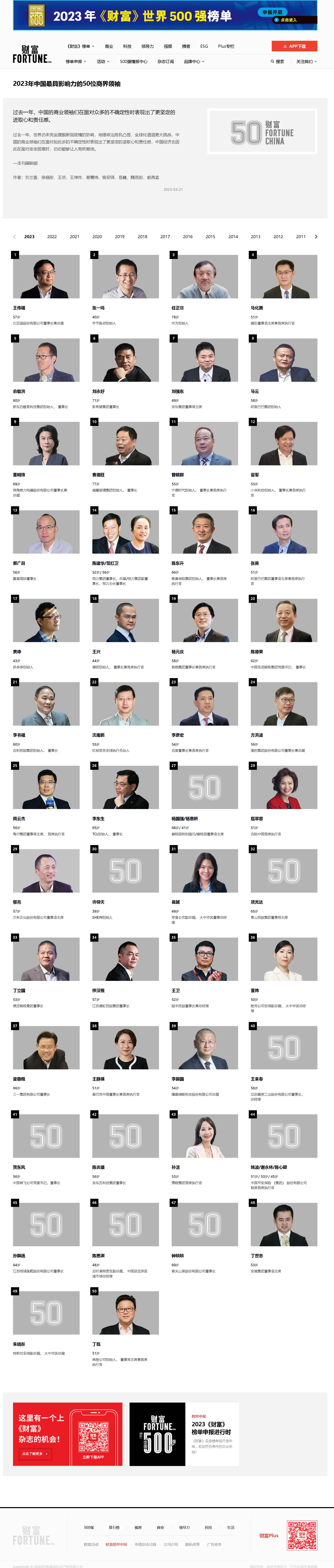 中國最具影響力的50位商界領袖