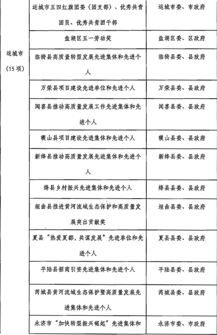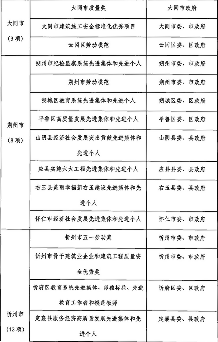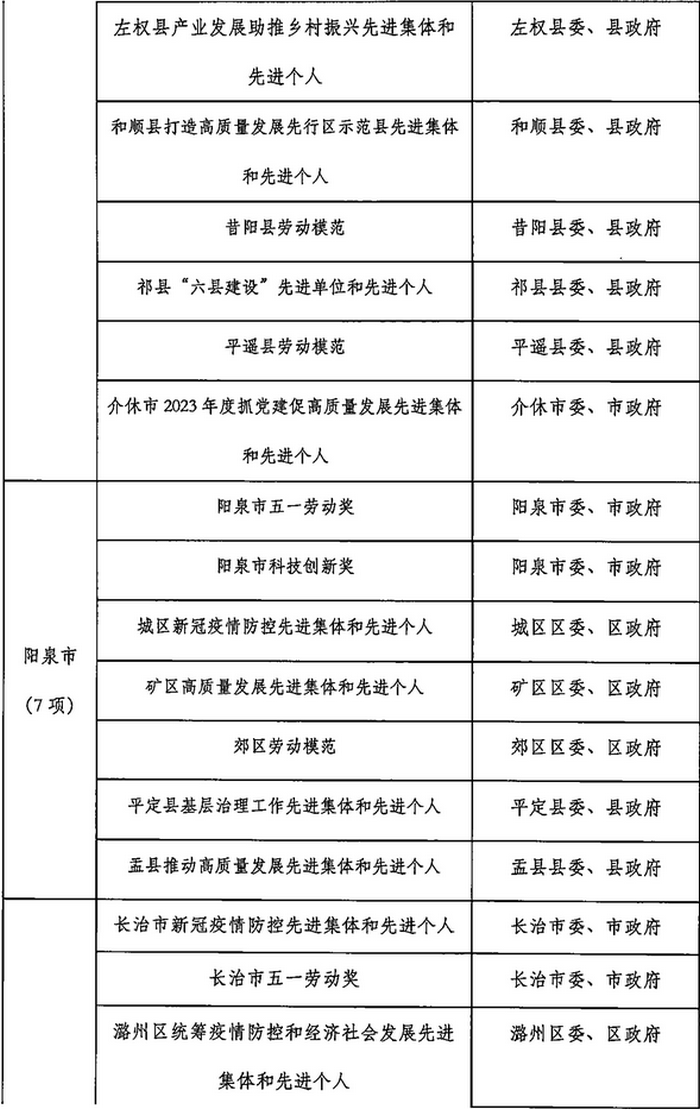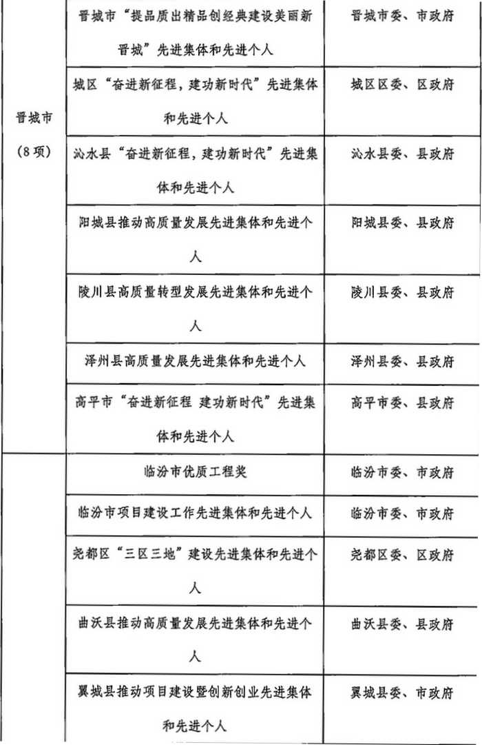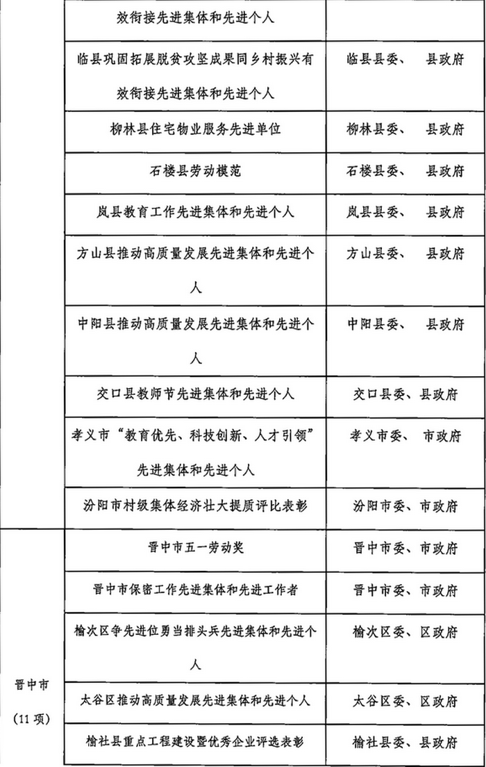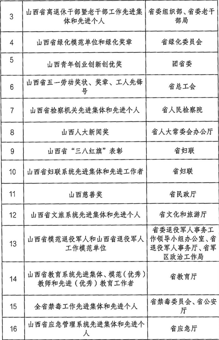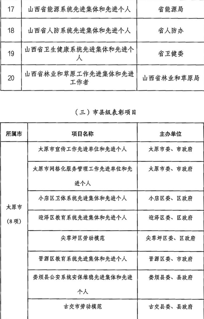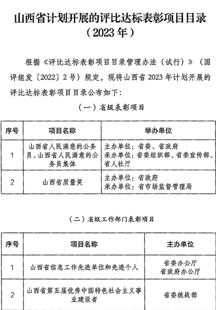 山西省2023年計(jì)劃開(kāi)展的評(píng)比達(dá)標(biāo)表彰項(xiàng)目目錄