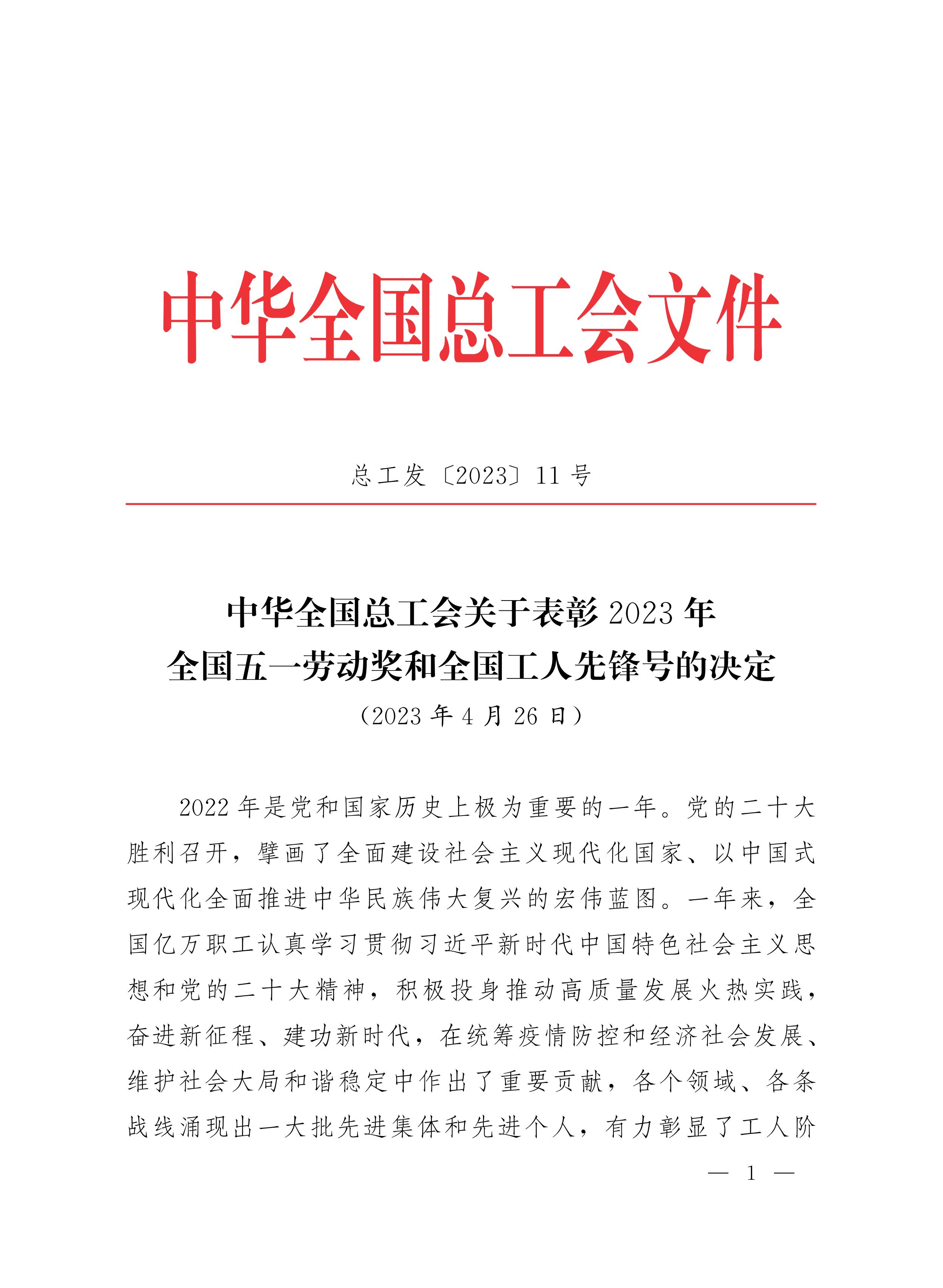 【行業(yè)資料】2023 年全國五一勞動獎和全國工人先鋒號名單