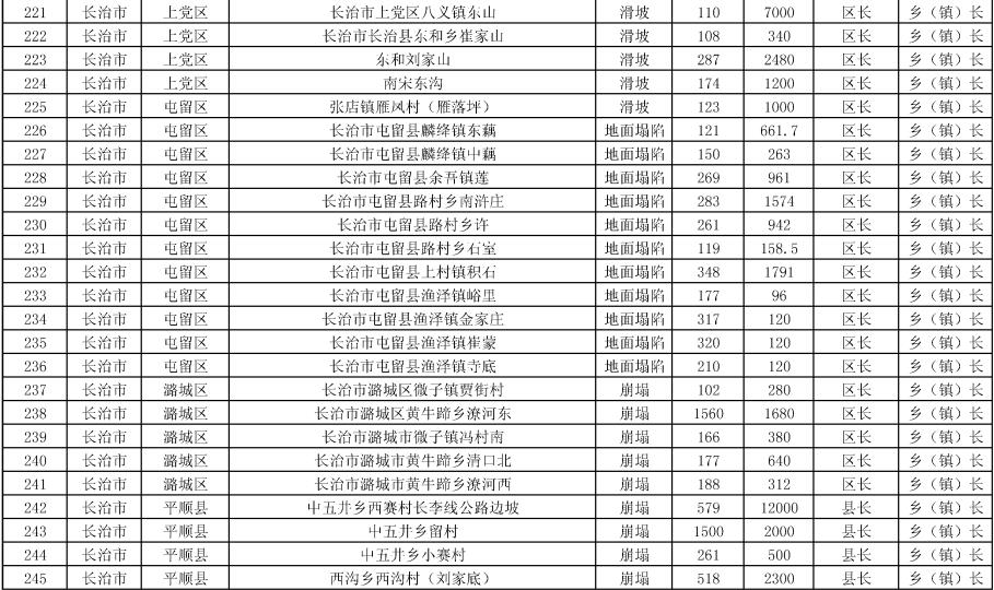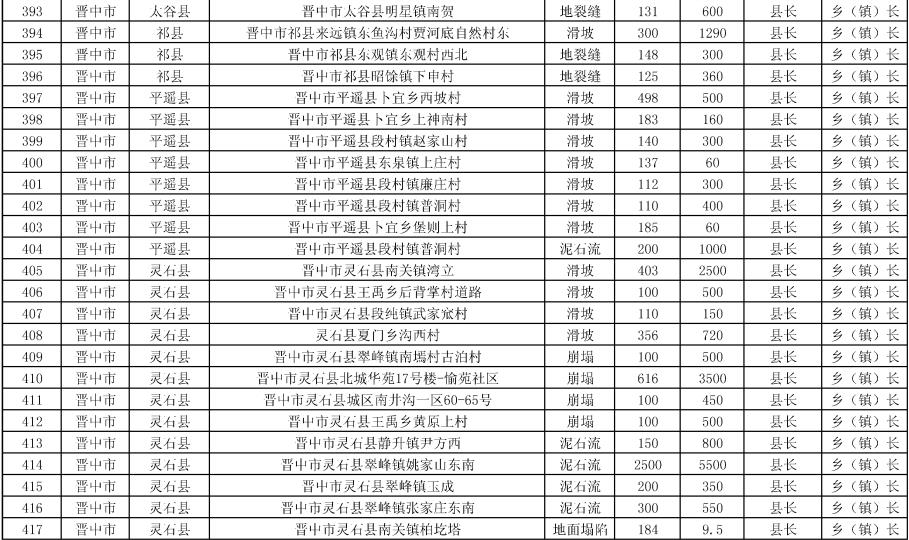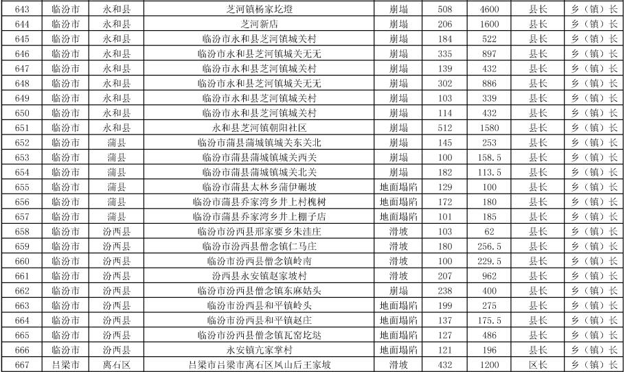 《方案》要求,強化治理搬遷,消除安全隱患。實施中央和省級資金安排9處地質災害治理工程項目。其中,河津市、夏縣、石樓縣、臨縣、永和縣、鄉(xiāng)寧縣、榆社縣各1處,武鄉(xiāng)縣2處?!斗桨浮诽岢?,要把縣級配套資金落實到位,加快項目施工進度,確保今年全部竣工;要推進中央和省級資金安排3397戶農(nóng)村地質災害避險搬遷工作,落實市縣配套資金,明確時間節(jié)點進度,確保年底全面開工,2024年竣工入住。