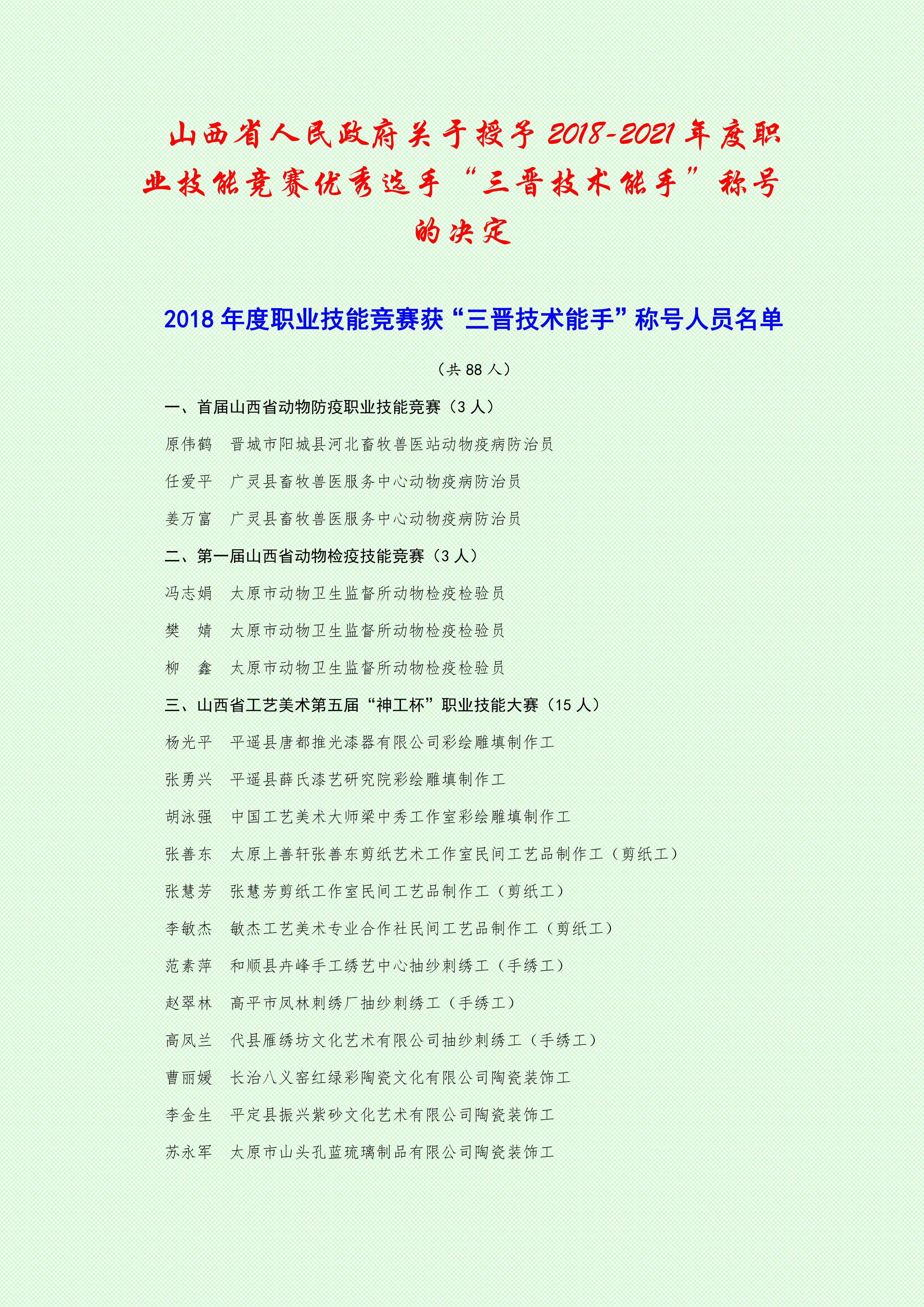 2018-2021山西省建筑業(yè)企業(yè)獲職業(yè)技能競賽“三晉技術(shù)能手”稱號名單